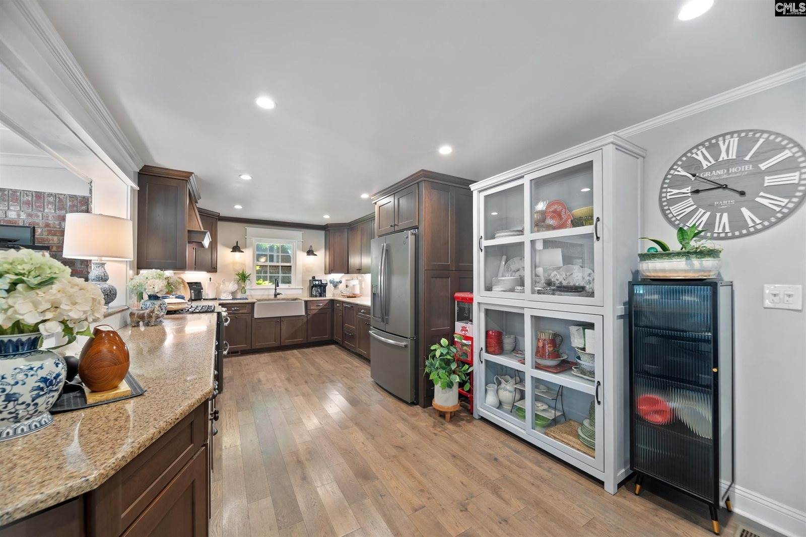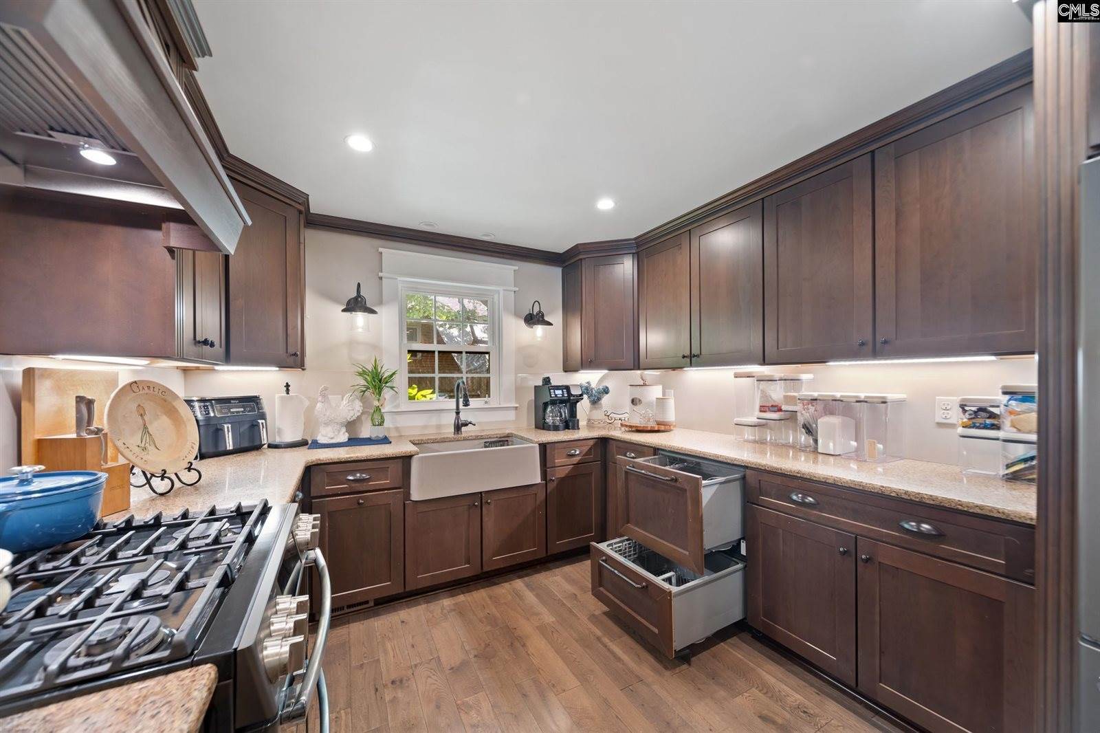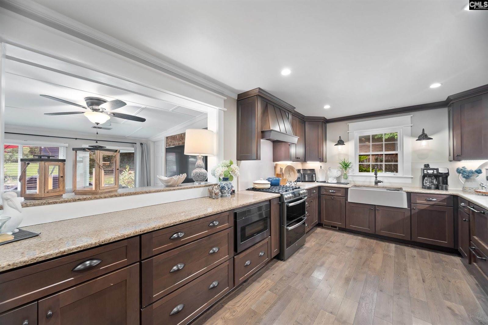 Welcome to this stunning brick ranch home that combines classic charm with modern updates! From the moment you arrive, you'll be drawn in by the impressive front porch. Perfect for relaxing evenings and morning coffee. Step inside through the spacious entryway of this brick classic! The formal living and dining rooms boast hardwood flooring and an ideal setting for entertaining guests and enjoying quiet evenings. At the heart of the home is a truly spectacular custom kitchen, featuring Diamond cabinetry, gas double oven, farmhouse sink, built in custom wall mount exhaust, granite countertops, self close cabinets, built in microwave, integrated trash bins and a sleek built in dishwasher. Whether you are hosting a dinner party or preparing a casual meal, this space is designed to impress. Enjoy the warmth and charm of the eat in kitchens cozy fireplace that creates a perfect gathering spot. This home offers four bedrooms and two and half baths. The primary spacious bedroom offers an updated primary bathroom with a walk in shower. One of the bedroom's include its own private half bathroom. The sunroom extends from your living space and offers views of the expansive backyard. You have your own private oasis with an inground swimming pool! Perfect for the hot summer days in Columbia South Carolina. About 7 miles to the VA Hospital, 4 miles to Fort Jackson Army Base and 8 miles to vibrant Downtown Columbia that includes The University of South Carolina and minutes away from shopping, restaurants, coffee shops and fitness centers! Don't miss you chance to own this beautifully maintained ranch home with luxury details inside and outside of the home! Check out my YouTube and Google Page for virtual tour. Also, explore the home with my 3D TOUR! Disclaimer: CMLS has not reviewed and, therefore, does not endorse vendors who may appear in listings.