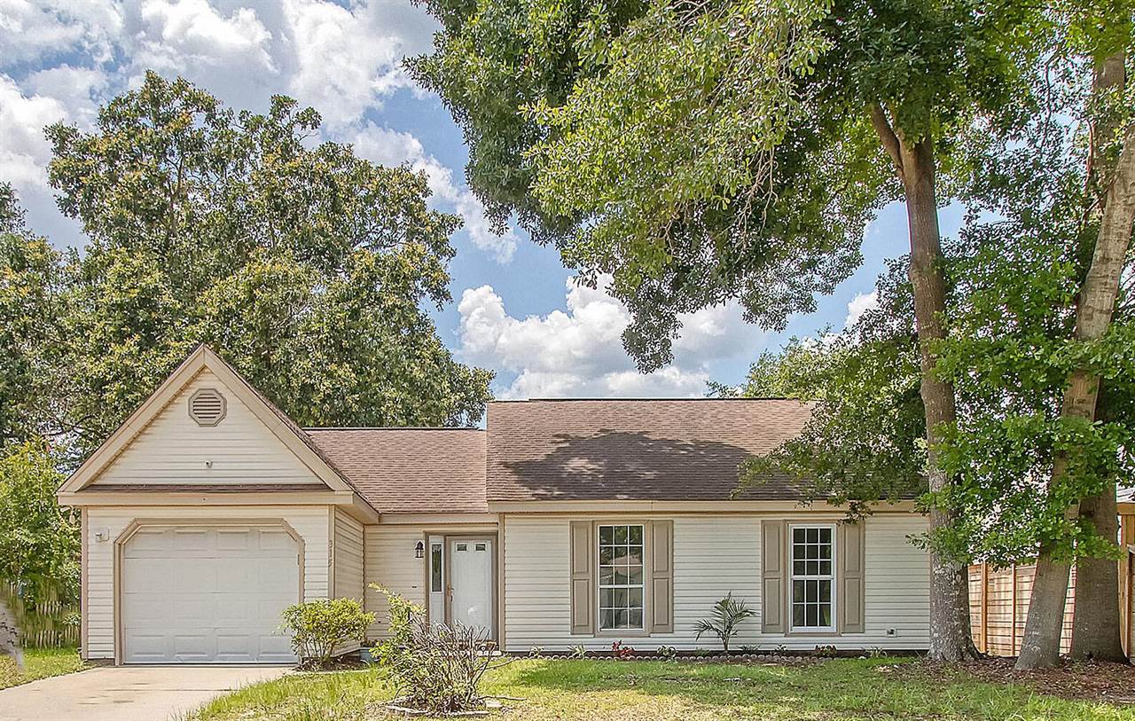 and full bath on opposite side. Tiled eat-in kitchen with French doors leading to a fenced backyard. 1-car garage and full driveway. Seller willing to replace windows with acceptable offer. Convenient to Carnes Crossroads, Roper Hospital, Cane Bay, Walmart,