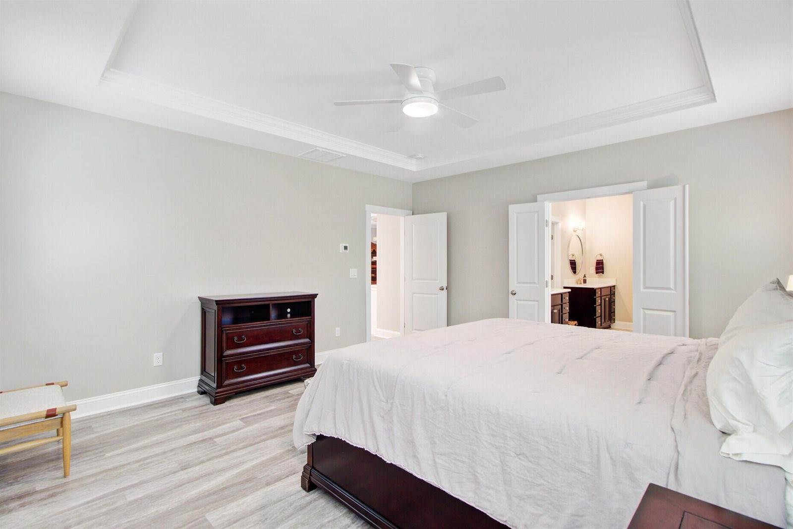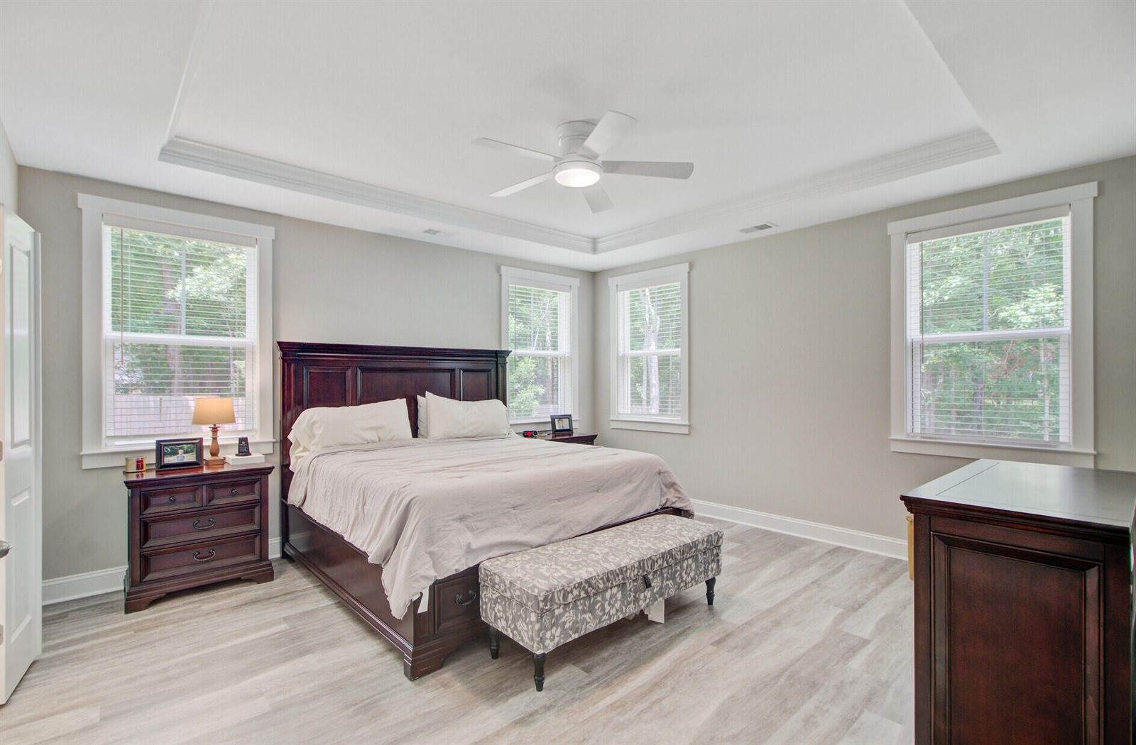 with tray ceiling and tons of windows! En suite boasts separate vanities, large soaking tub and separate tile shower. Large walk-in closet is sure to accommodate and linen closet with additional storage area is a perfect solution to your storage needs. Full