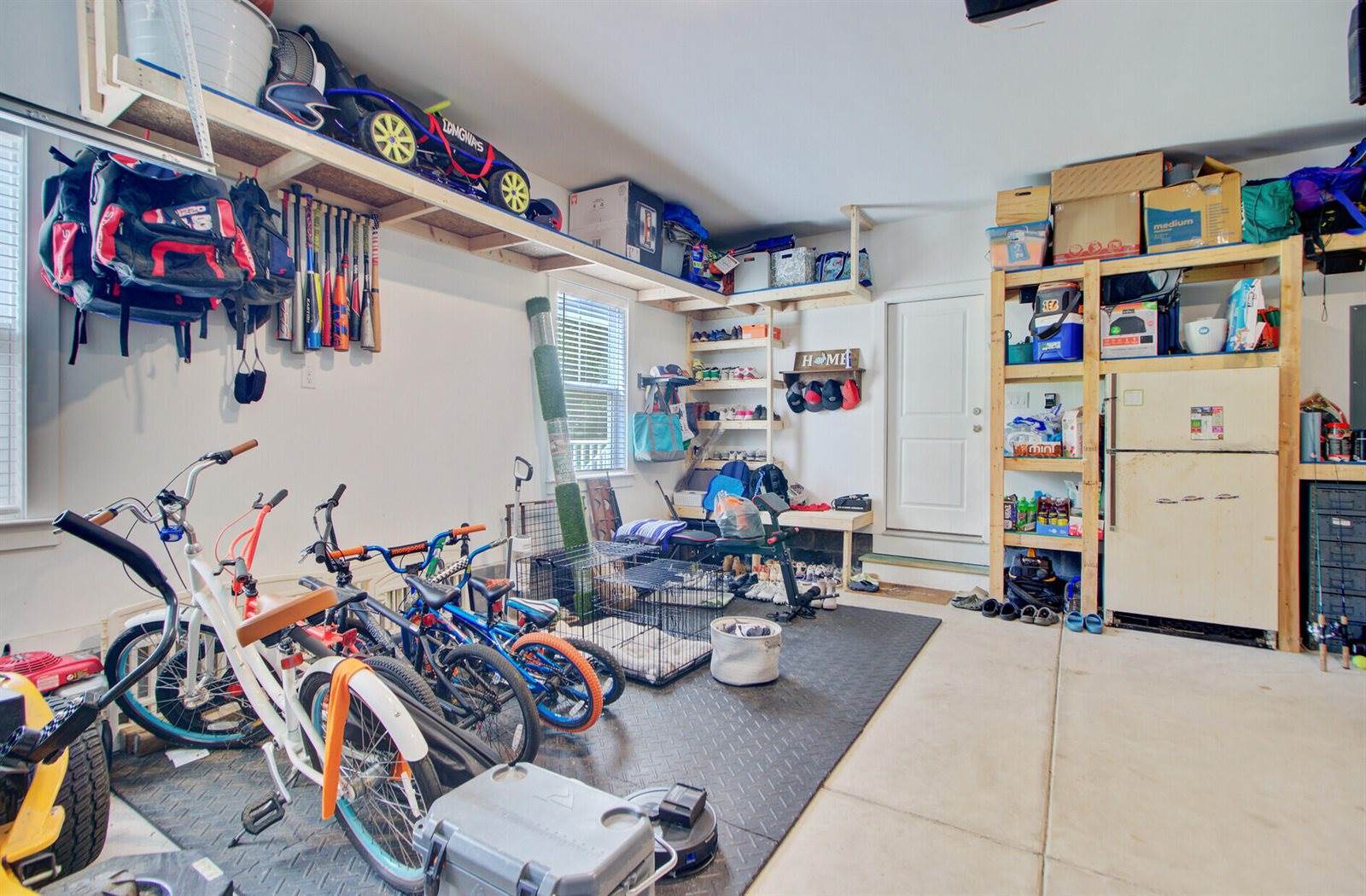 with wood shelves, powder room and oversized laundry room with overhead cabinets & custom built-in cubbies with folding counter. Oak stairs lead to the second level where the cozy loft makes the perfect spot for play/gaming area plus the double door storage