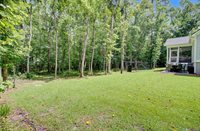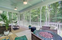 Enjoy year-round outdoor living on the full front porch, rear screened porch or open patio offering serene wooded views. Gutters with leaf guards in place, tankless water heater, upgraded LVP flooring throughout main living areas on first floor, termite bond