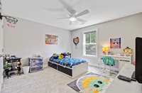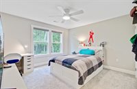 closet will help keep you organized! Attic storage off this loft has an abundance of floored area and shelving for great storage options. Bedrooms 3 & 4 are light & bright with wide closets and access to a shared full bath with separate vanity & wet area.