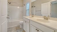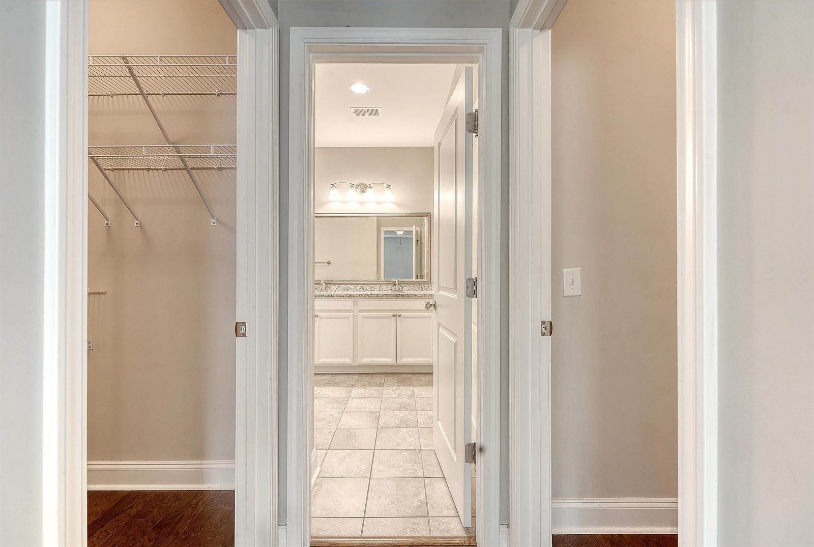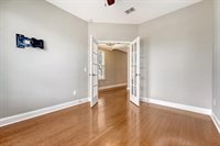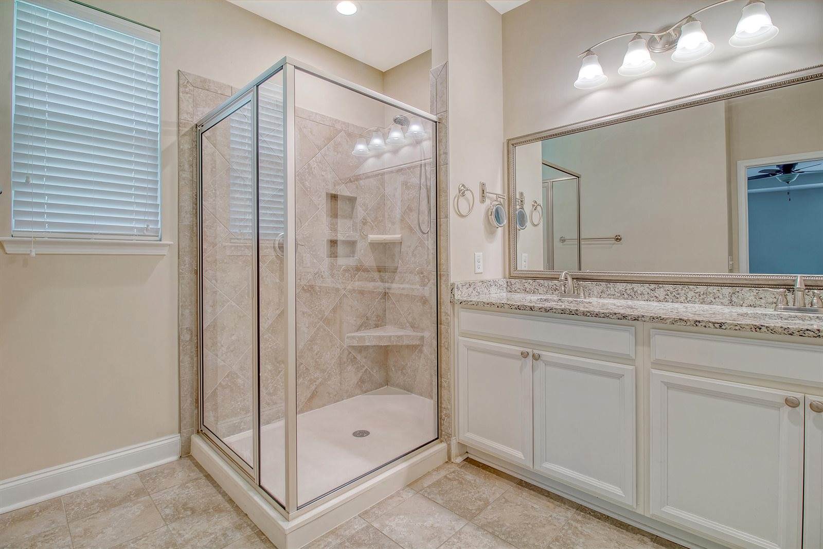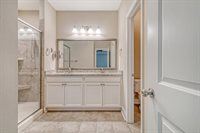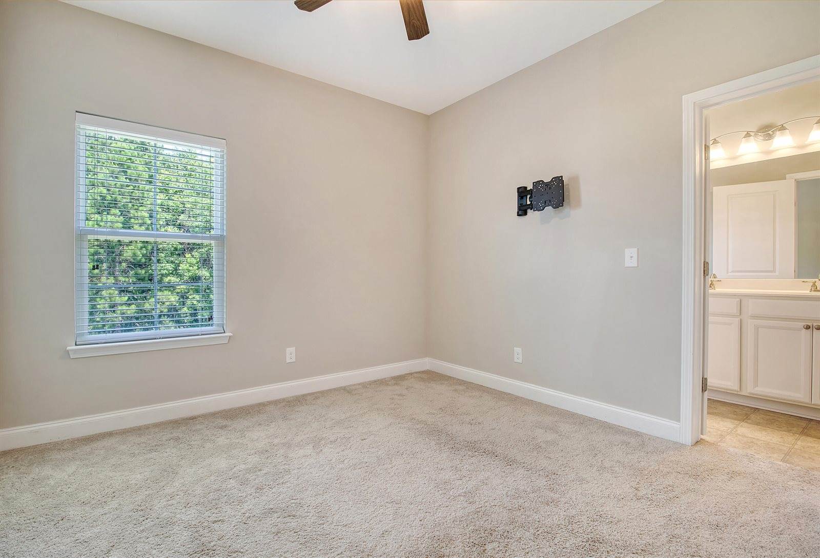 space, home gym or to get away from the noise and enjoy watching TV. The mounted TV will remain for the new owners to enjoy. Two generously sized bedrooms are connected by a well-appointed Jack-and-Jill bathroom with a dual vanity and tile flooring. Back downstairs,