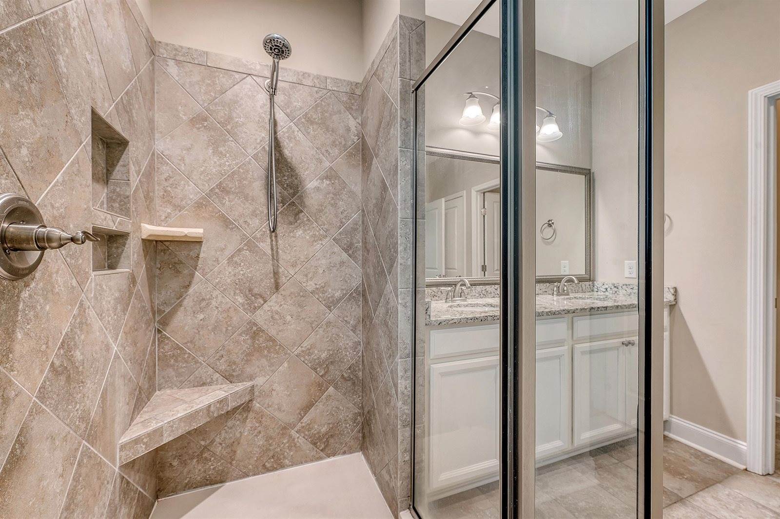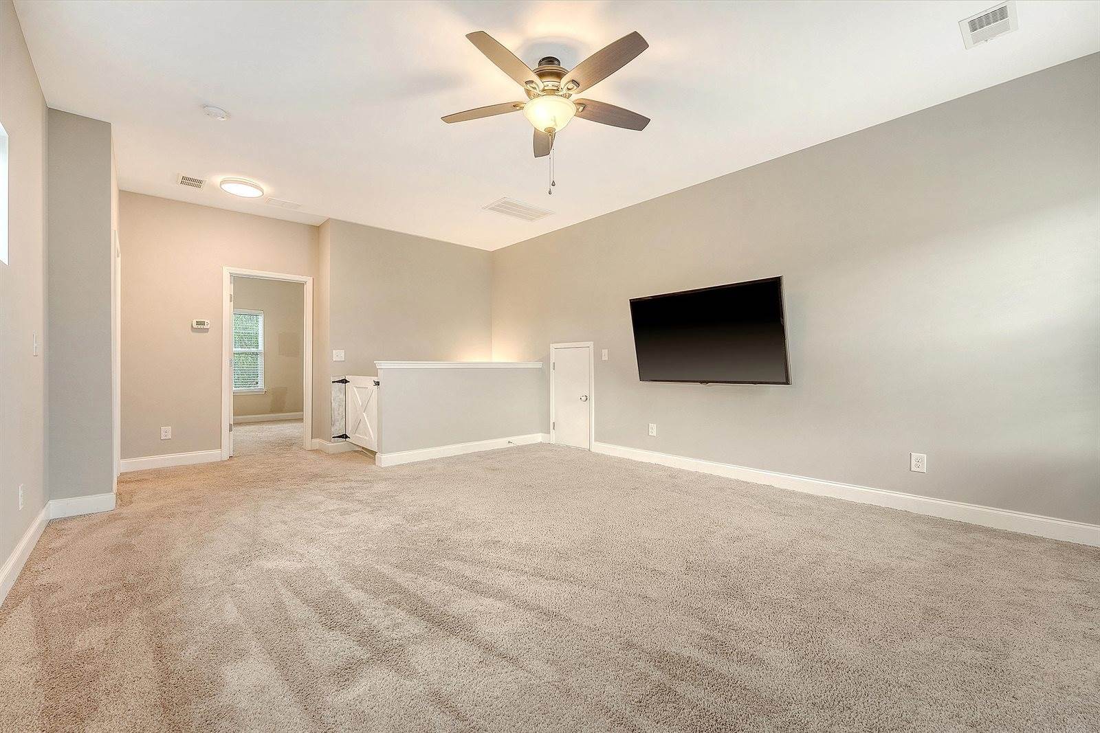 living area is the first-floor primary suite, featuring tray ceilings, two separate walk-in closets, and a luxurious en suite bathroom with dual vanities and a beautiful walk-in shower. Upstairs, you'll find a large loft area perfect for a playroom, media