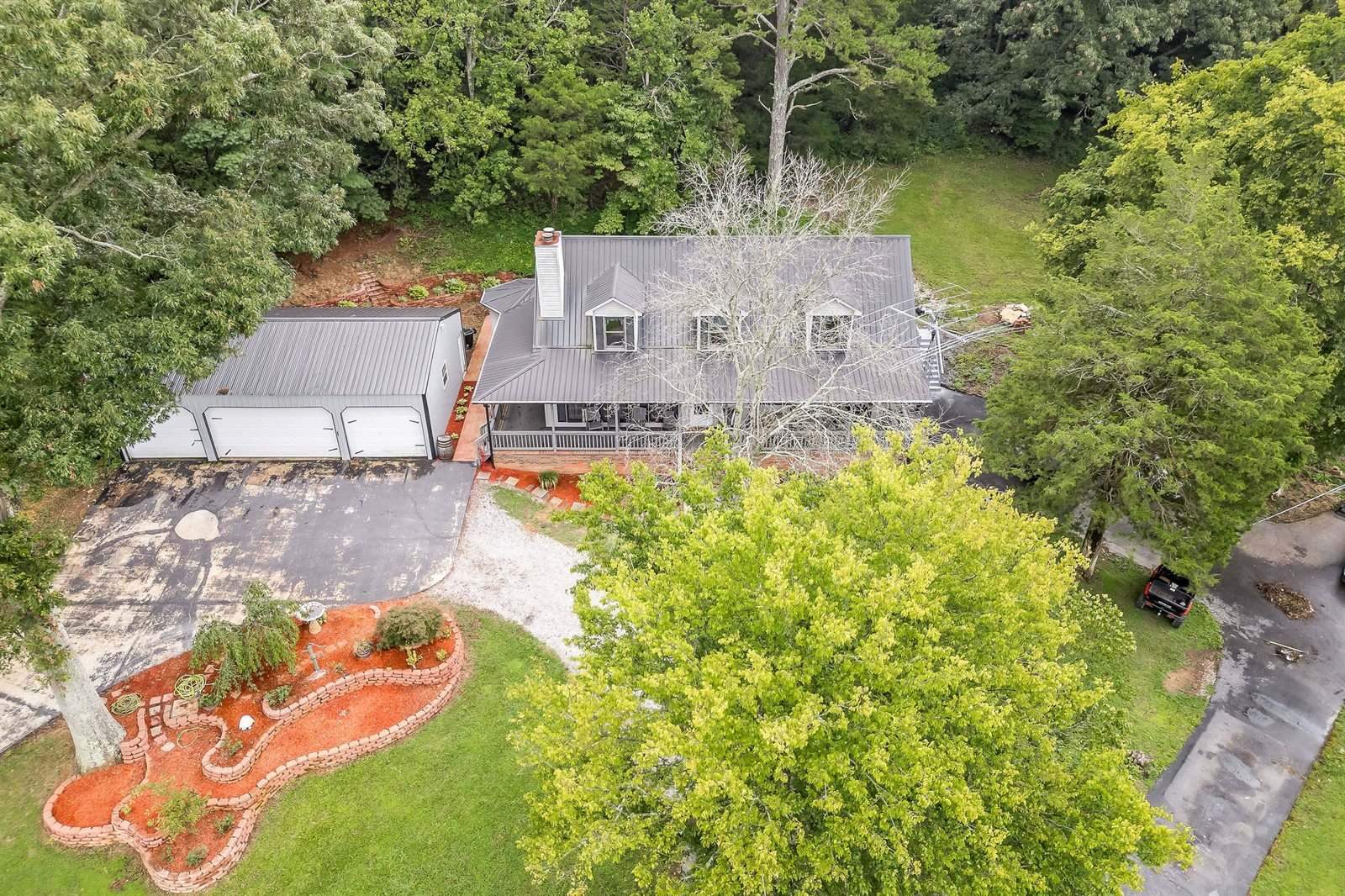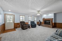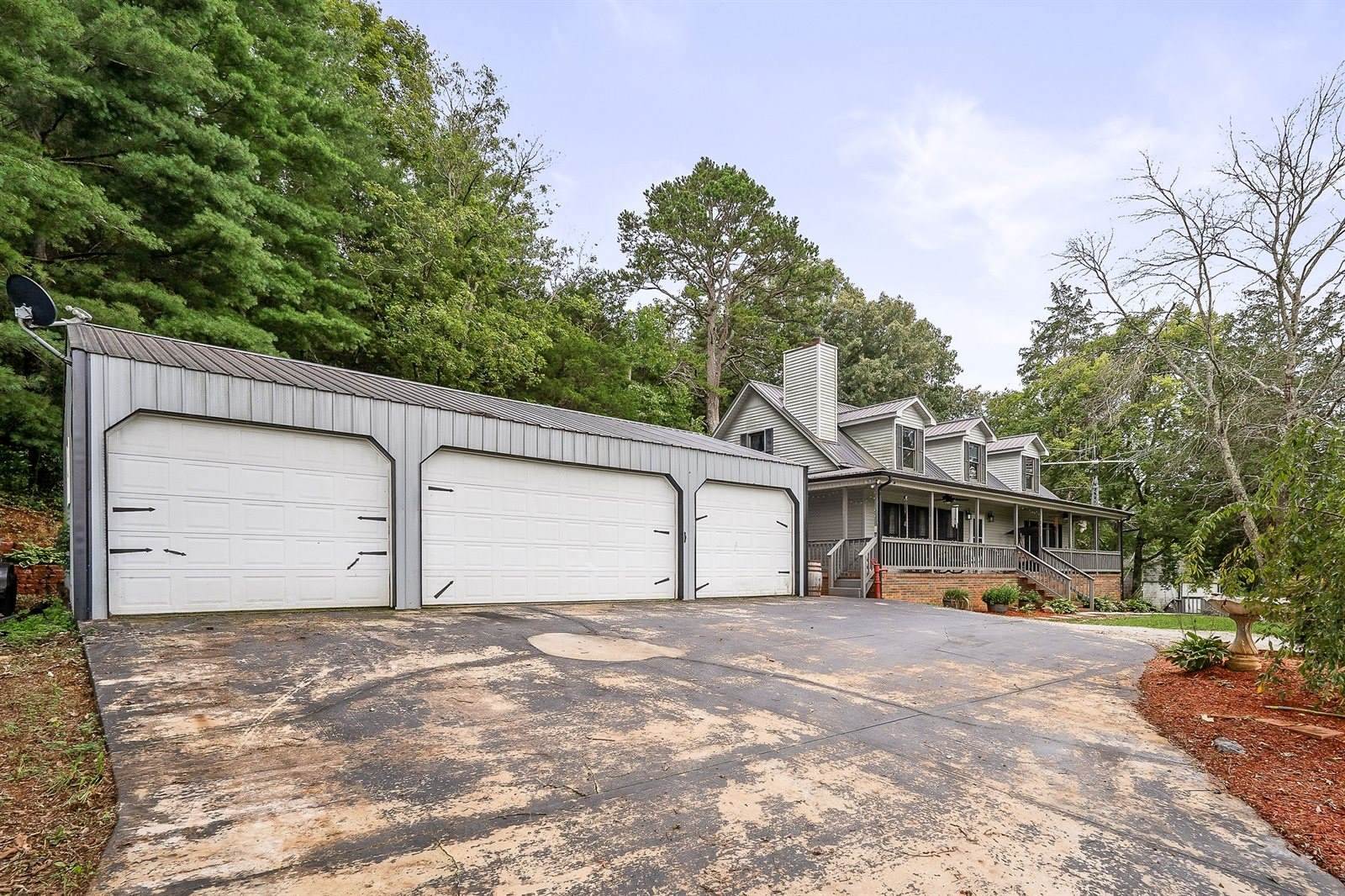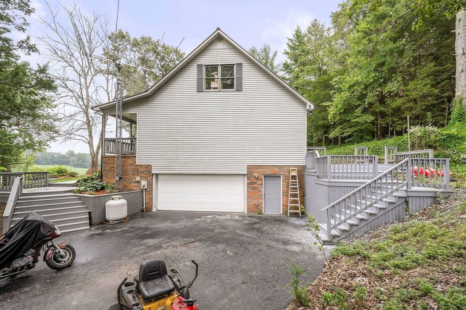 Unrestricted and peacefully set on over 5 acres, this home features 4 bedrooms, 3.5 baths, and two bonus rooms downstairs—perfect for a home office, game room, or studio. Enjoy a private indoor room with a like-new hot tub. The property offers plenty of space, including 8 total garage bays across multiple structures. Step onto the spacious back deck and soak in the quiet country setting. This home offers endless potential with easy access to major roads.