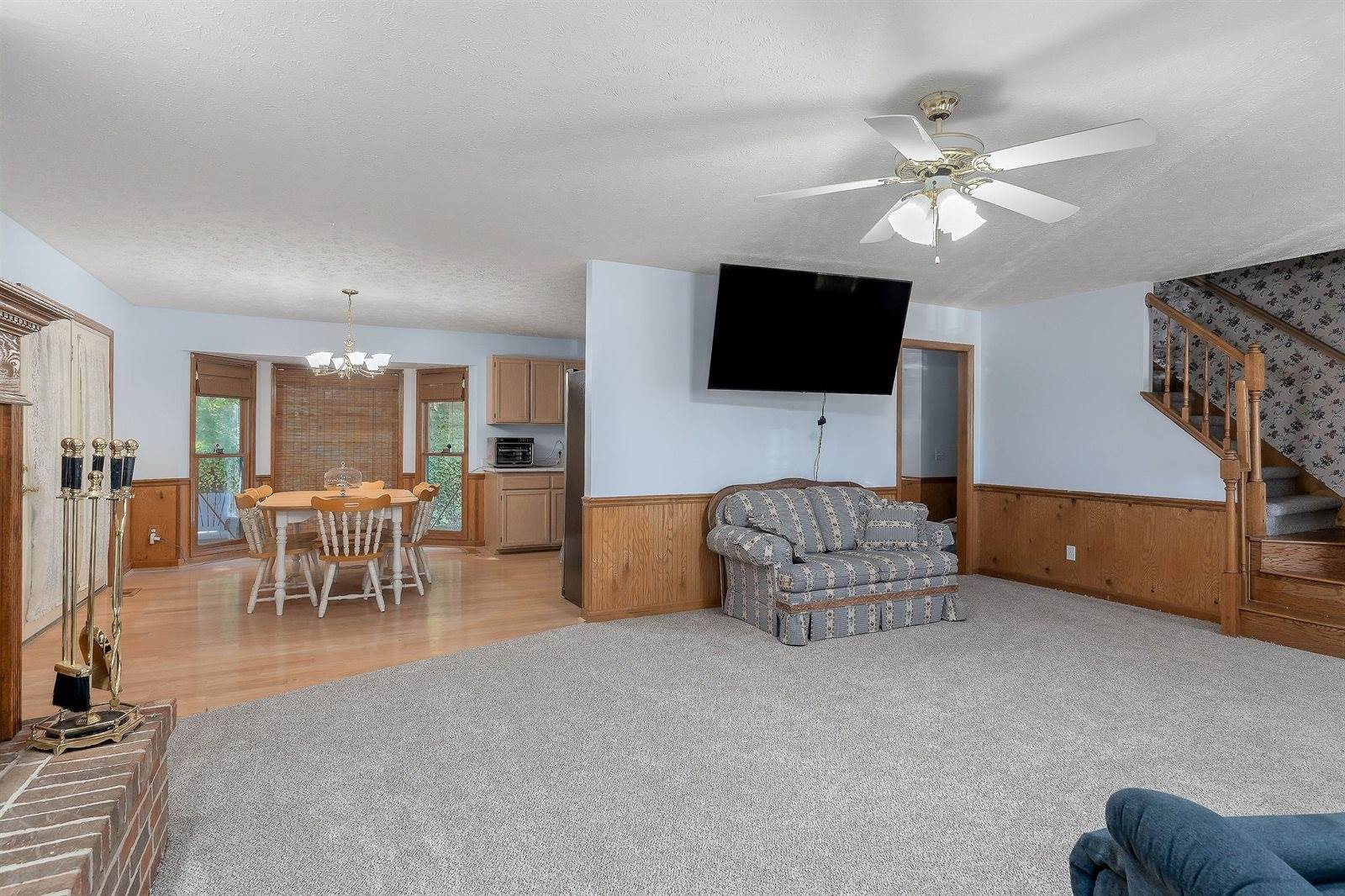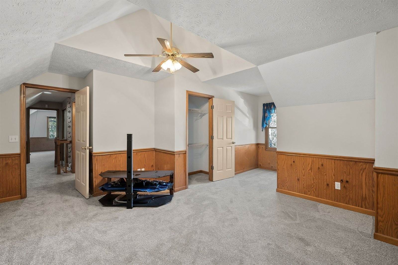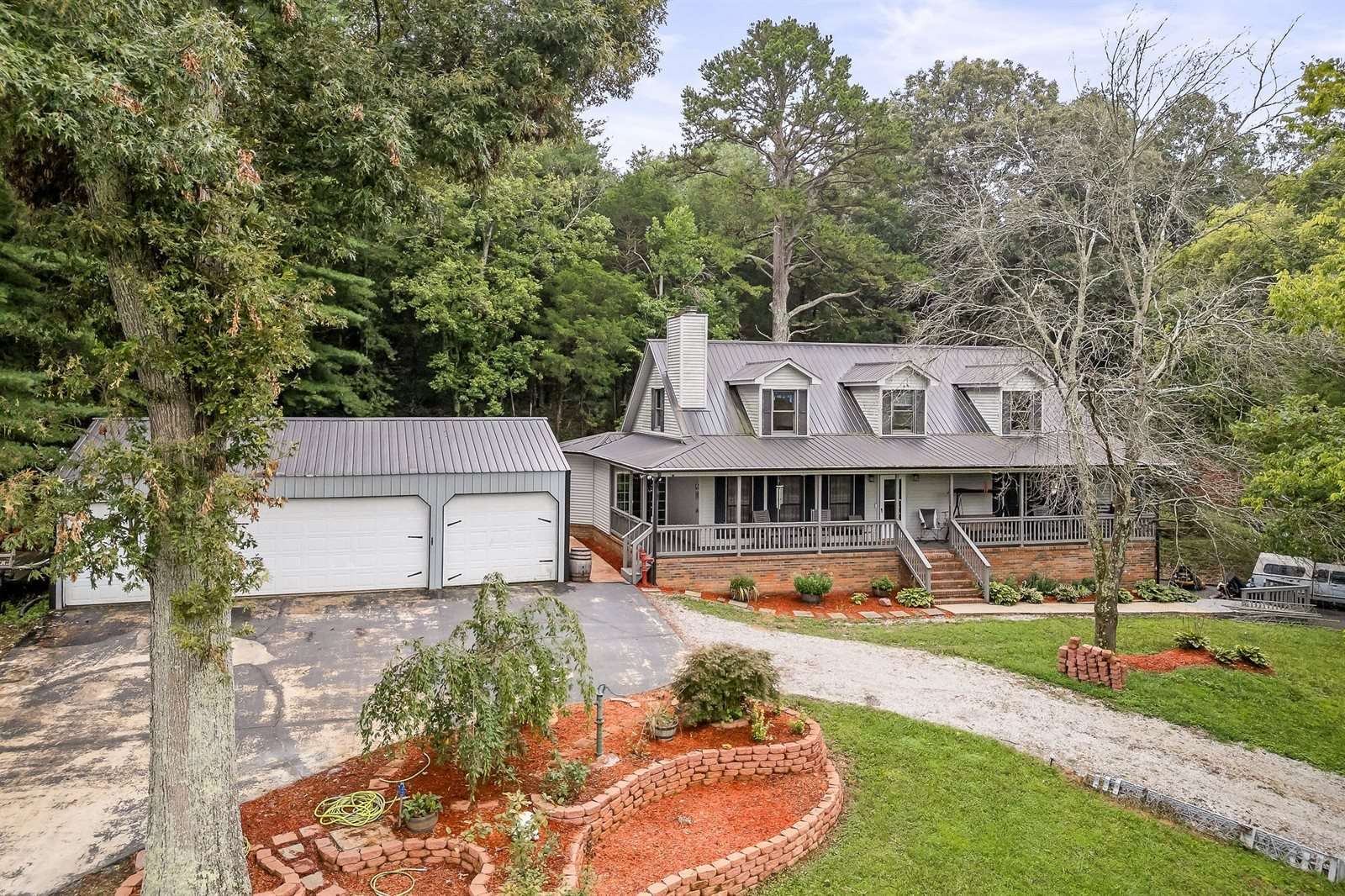 Unrestricted and peacefully set on over 5 acres, this home features 4 bedrooms, 3.5 baths, and two bonus rooms downstairs—perfect for a home office, game room, or studio. Enjoy a private indoor room with a like-new hot tub. The property offers plenty of space, including 8 total garage bays across multiple structures. Step onto the spacious back deck and soak in the quiet country setting. This home offers endless potential with easy access to major roads.