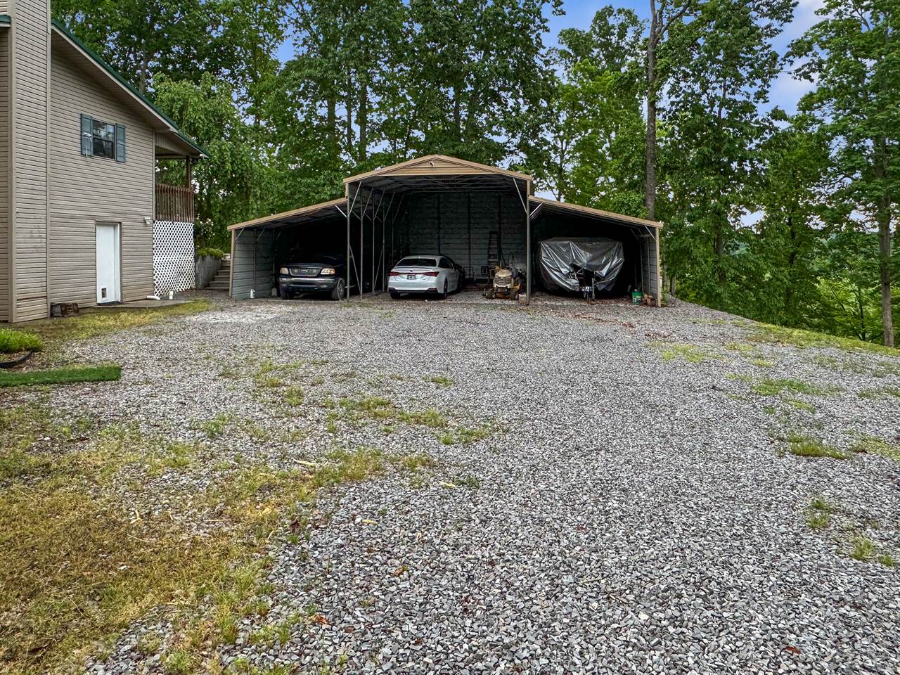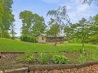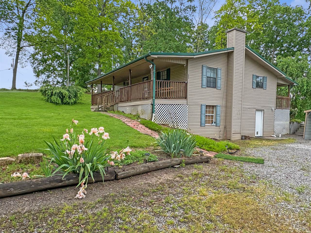 NATURE ENTHUSIASTS WILL LOVE THIS PROPERTY! GORGEOUS & ALMOST COMPLETELY CLEARED 5.5 ACRES!! This property has rolling hills, beautiful mature shade trees, 2 ponds-one stocked with catfish, and so much more! The home that sits on this property was hand crafted by the owner in 1993 and could serve as your weekend getaway, STR, or permanent residence! There are no restrictions here so you can use the property as you wish. It has a cabin-like feel to it with 2 bedrooms & 1 bath on the main level, a large living room area, a large eat-in kitchen, newer hardwood flooring & carpet, plus large covered front and back porches. It has also been freshly painted. You can enjoy plenty of wildlife from this property as the deer, fox, wild turkey, and other wildlife come out to roam. The basement is currently unfinished but has potential for an additional 1200 of finished square footage with plumbing for an additional bath. There's also a wood burning stove in the basement to keep the cold winter nights warm and cozy. There's a stockpile of wood that will be included as well. The driveway is extra large for parking, plus, there's also an extra large 40' x 32' carport that can accommodate 3-4 vehicles, an RV, ATV's, or a large boat. There are a variety of seasonally blooming trees on the property including Red McIntosh apple trees, cherry trees, magnolia trees, and more. For the college student, LMU is approximately 10 minutes from here. The views from this property are gorgeous! Come see it for yourself!