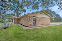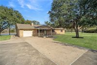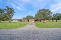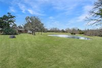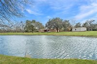 Charming 3 bedroom, 2 bathroom, 1 attached garage, brick home sits on 5.08 Acres, nestled amongst large oak trees. Relax at the end of the day on covered front and back porches overlooking a beautiful fishing pond, while watching natural wildlife. One owner