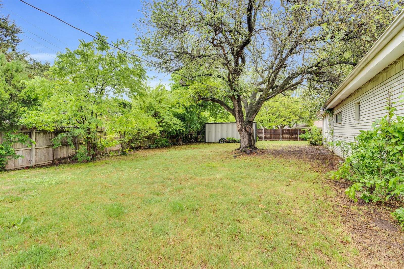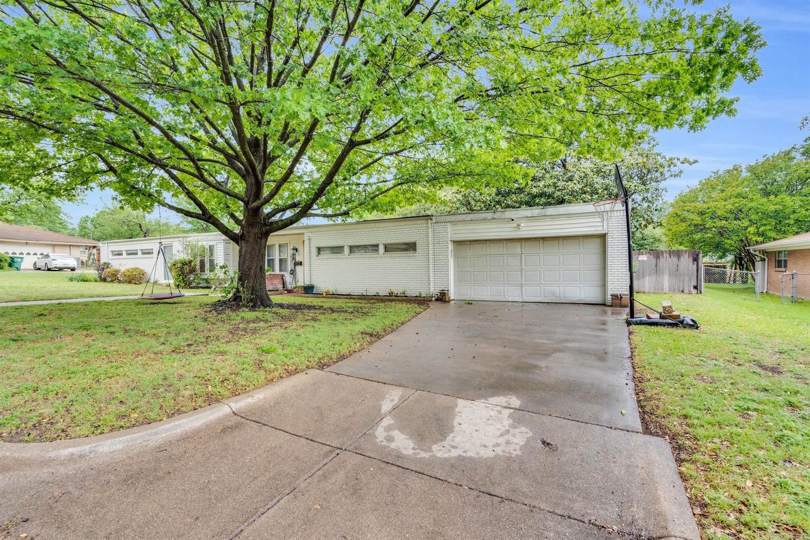 This spacious 4 bedroom, 3 bath, single story is a fabulous family home with an open floor plan. It has several modernized touches, from low maintenance, stylish retro features. Nice sized kitchen at the very heart of the home. Kitchen is equipped with a gas range and double oven, built in microwave, pantry and ample cabinet space. Spacious family room with brick fireplace. The master bedroom features two over-sized closets, one being cedar lined. The large private treed backyard has plenty of grass that surrounds the home and a oversized covered patio that is perfect for entertaining. The garage space has built in shelving and is perfect for extra storage or a workshop.