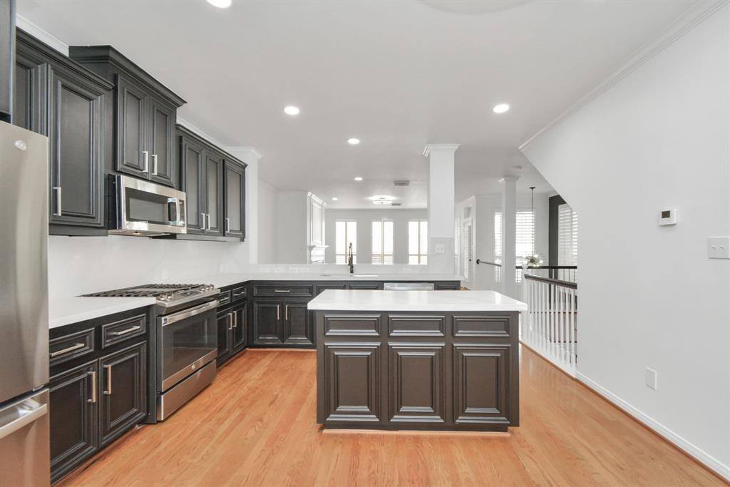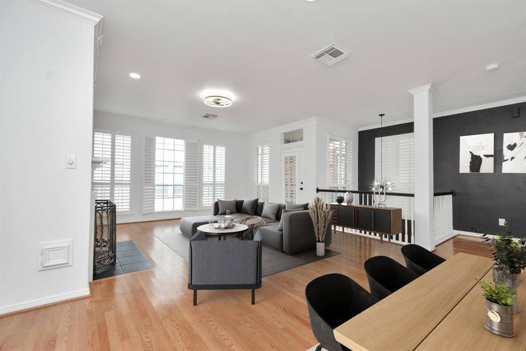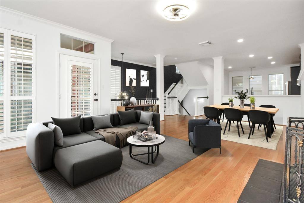 Nestled just off the vibrant Washington Corridor, this 3-story Rice-Military gem effortlessly blends modern sophistication & timeless charm. Crisp black-&-white finishes & sleek contemporary lighting & fans complement classic touches like Plantation Shutters, & Hardwood Floors & Staircase. The spacious Kitchen boasts crisp quartz countertops, & an incredible amount of storage & work space. Natural light pours into the open 2nd Floor Living Space, accentuated by walls of windows & a private Balcony perfect for enjoying a cup of coffee or martini. The expansive Primary Suite offers a spa-like En Suite Bathroom w/ an oversized frameless walk-in Shower & an expansive Walk-In Closet. The 1st-Floor Flex Room opens to a small, highly coveted fenced Yard & makes a perfect Office, Work-Out Room, or Guest Suite. With only 1-shared wall, a private 2-car Garage & premier location just steps from top-rated dining, nightlife, shopping & activities - this home offers the best of in-town living!