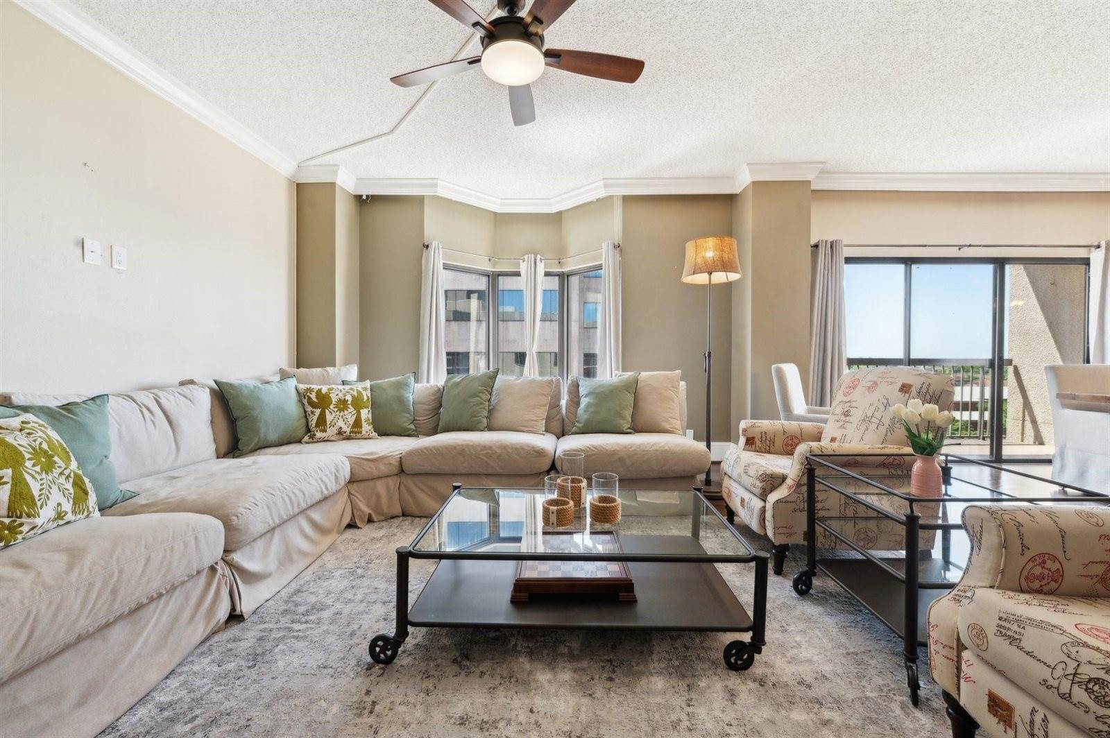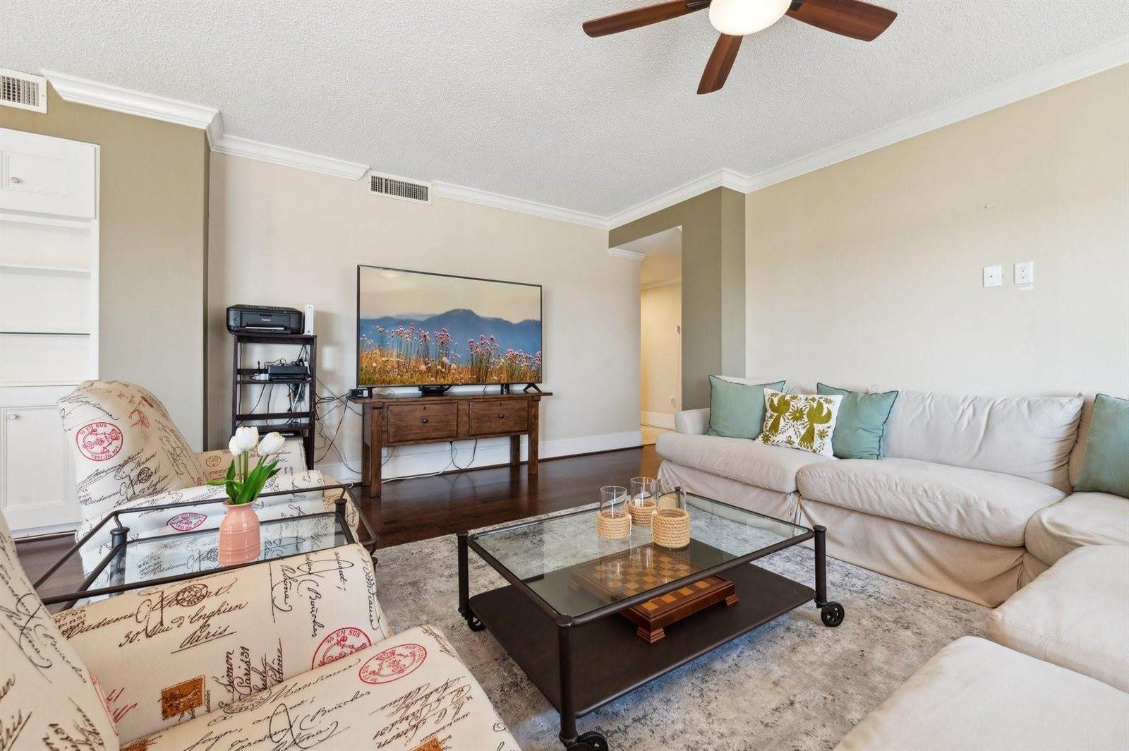 Spacious 7th-floor condo in the prestigious Woodway Place Atrium high-rise! This 3-bed, 2.5-bath unit includes a study, large living & dining areas, & two private balconies with city/park views. The galley kitchen features granite counters, stainless appliances,