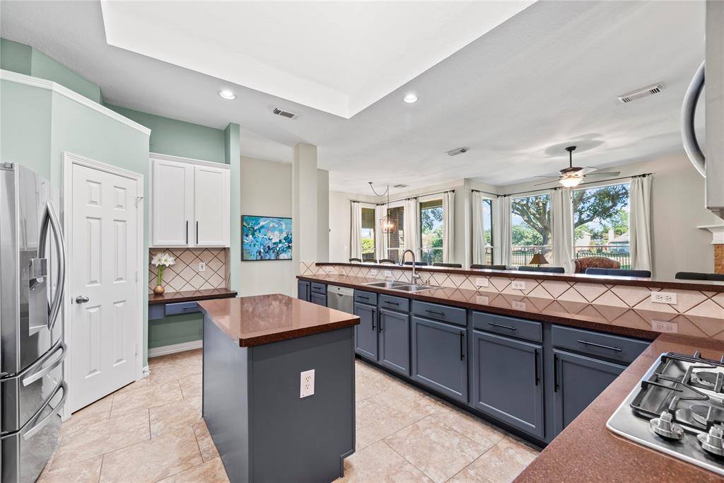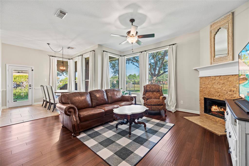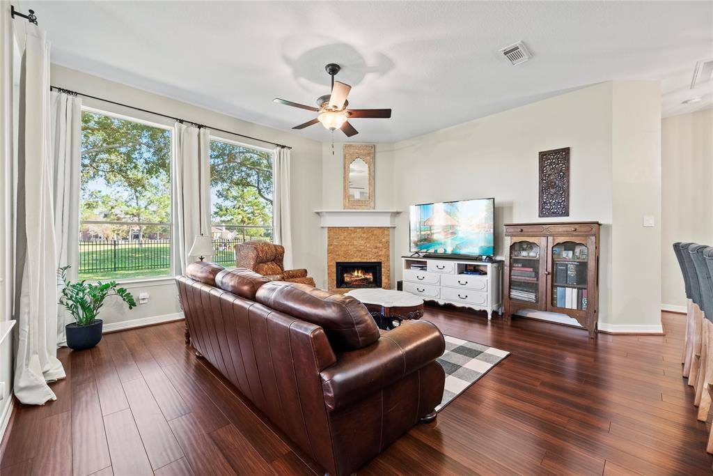Welcome to your NextHome! A stunning single story home in the gated, master planned community of Stone Gate . Nestled on a quiet cul-de-sac, this all brick residence sits directly on the tee box of the 2nd hole of Houston National Golf Club, offering a pristine golf course view. Step inside to an open floor plan with high ceilings and abundant windows. The grand kitchen, featuring stainless steel appliances (2022) and a 15’ breakfast bar, seamlessly flows into the living area with a gas fireplace, perfect for hosting and entertaining. The owners have carefully cared for, maintained, and updated every corner of this house, ensuring luxury and functionality. The owner’s retreat boasts bay windows, a walk in closet, and an elegantly updated bathroom. A split floor plan ensures privacy and comfort. Recent upgrades include energy efficient Pella front door and UV window protection (2024), interior/exterior paint and carpet (2023), a new HVAC unit (2023), and sprinkler system.