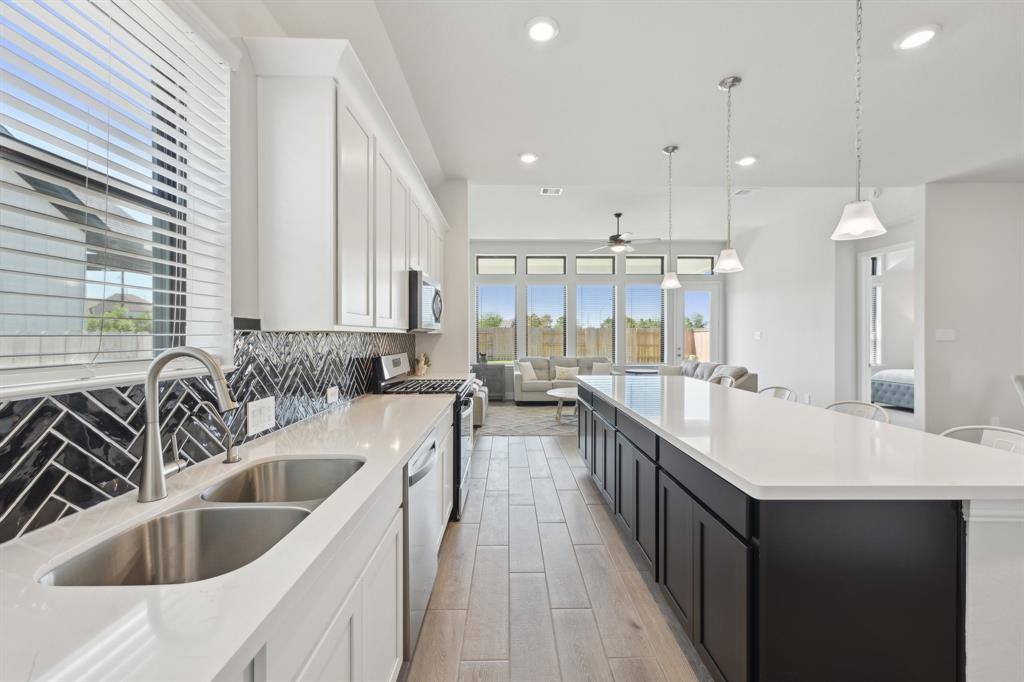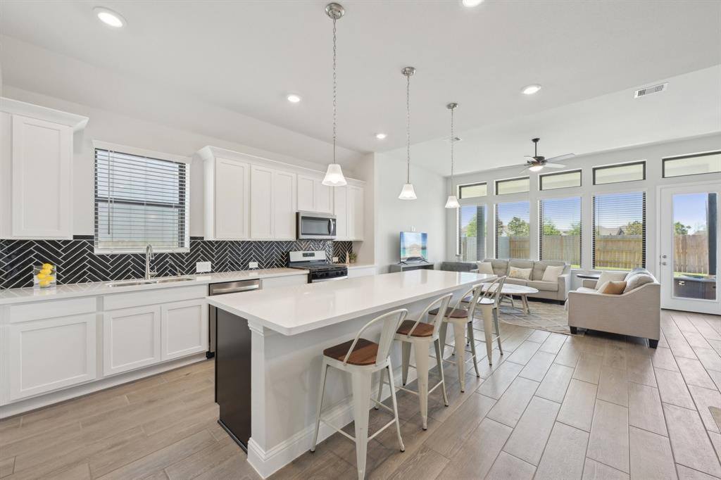 Charming 1-story duet home in the master-planned community of Elyson featuring 3 beds, 2 baths, & a 2-car garage. Front & back lawn maintenance is included! This home offers an open-concept layout with wood-look ceramic tile flooring & a spacious family room with a wall of windows—perfect for hosting family gatherings. The island kitchen includes quartz countertops, shaker cabinetry, stainless gas appliances, & a large pantry. The primary suite boasts a walk-in closet, dual vanities, & an extended shower. Elyson’s resort-style amenities feature a year-round pool, playground, splash pad & more. Zoned to Katy ISD with quick access to I-10 & the Grand Parkway. Front & back lawn mowing/mulching is included in HOA dues.