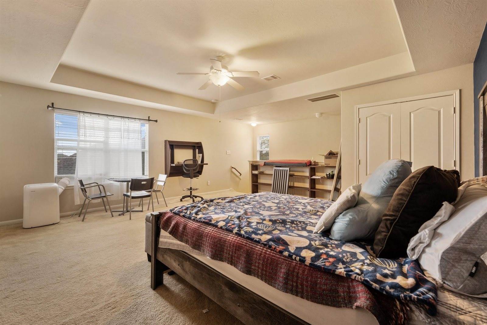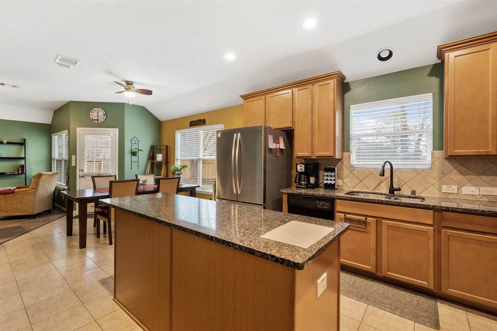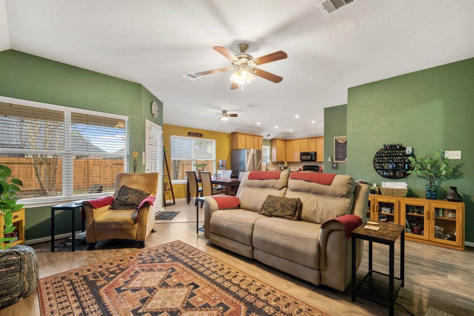 a large covered patio in the backyard providing an ideal space for relaxation or entertaining. The huge backyard also has plenty of green space! Upgrades include a brand new air conditioner! Conveniently situated near 69 and 36, this residence offers easy