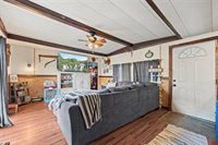 Well thought out updated home nestled on nearly 1/2 acre, enveloped by majestic hardwoods. This charming abode boasts 2 bedrooms, 1 bathroom, a spacious addition, and a grand 2-car garage with a sizable shop on a prime corner lot. Revel in the tranquility of low taxes and the security of a never-flooded haven. The oversized detached garage and shop are a homeowner's dream, offering ample space for hobbies and storage. A true gem awaiting your personal touch.