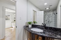 Located on a beautiful, tree-lined street in the heart of Tyler, this five-bedroom home embodies classic Southern charm with elegant finishes and modern comforts. White oak floors flow throughout the main living areas, complementing the formal dining room and a spacious living room. The gourmet kitchen features top-of-the-line appliances, perfect for both everyday living and entertaining and opens to a family room with huge glass sliding doors leading to the pool. The expansive primary suite offers a private retreat with his-and-her bathrooms, french doors leading to a private patio and direct access to the study. While on the other side of the home there is a separate mother-in-law suite downstairs providing flexibility for guests or extended family. Upstairs, a large playroom adds additional space for recreation and relaxation. Additionally, there are 3 bedrooms with attached bathrooms. The three car garage with epoxy floors offers tons of storage. Outside, the backyard is designed for entertaining, complete with a sparkling pool and inviting gathering areas. Situated in a prime central location, this home offers both timeless elegance and everyday functionality.
