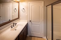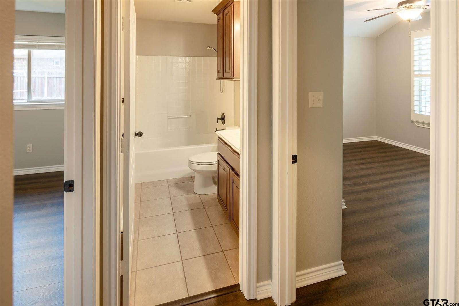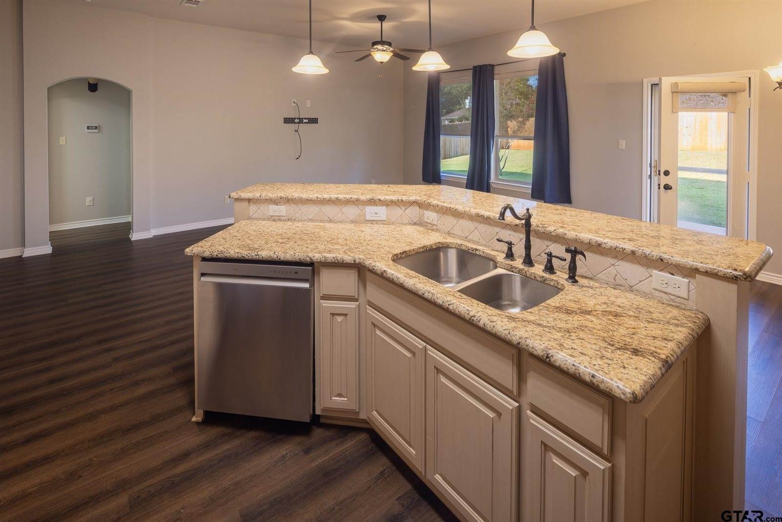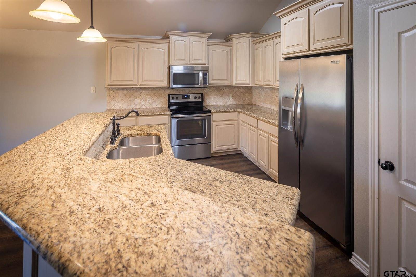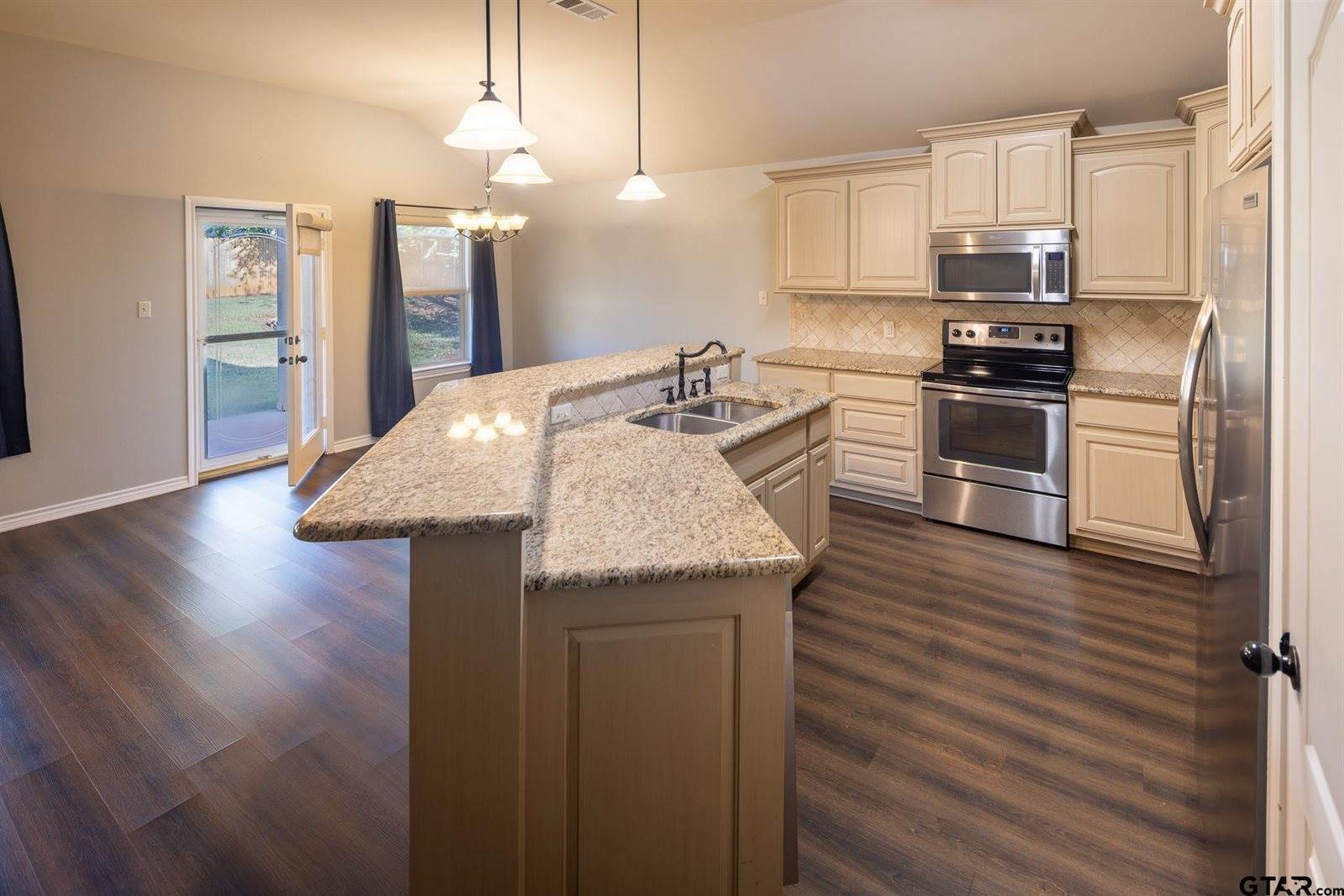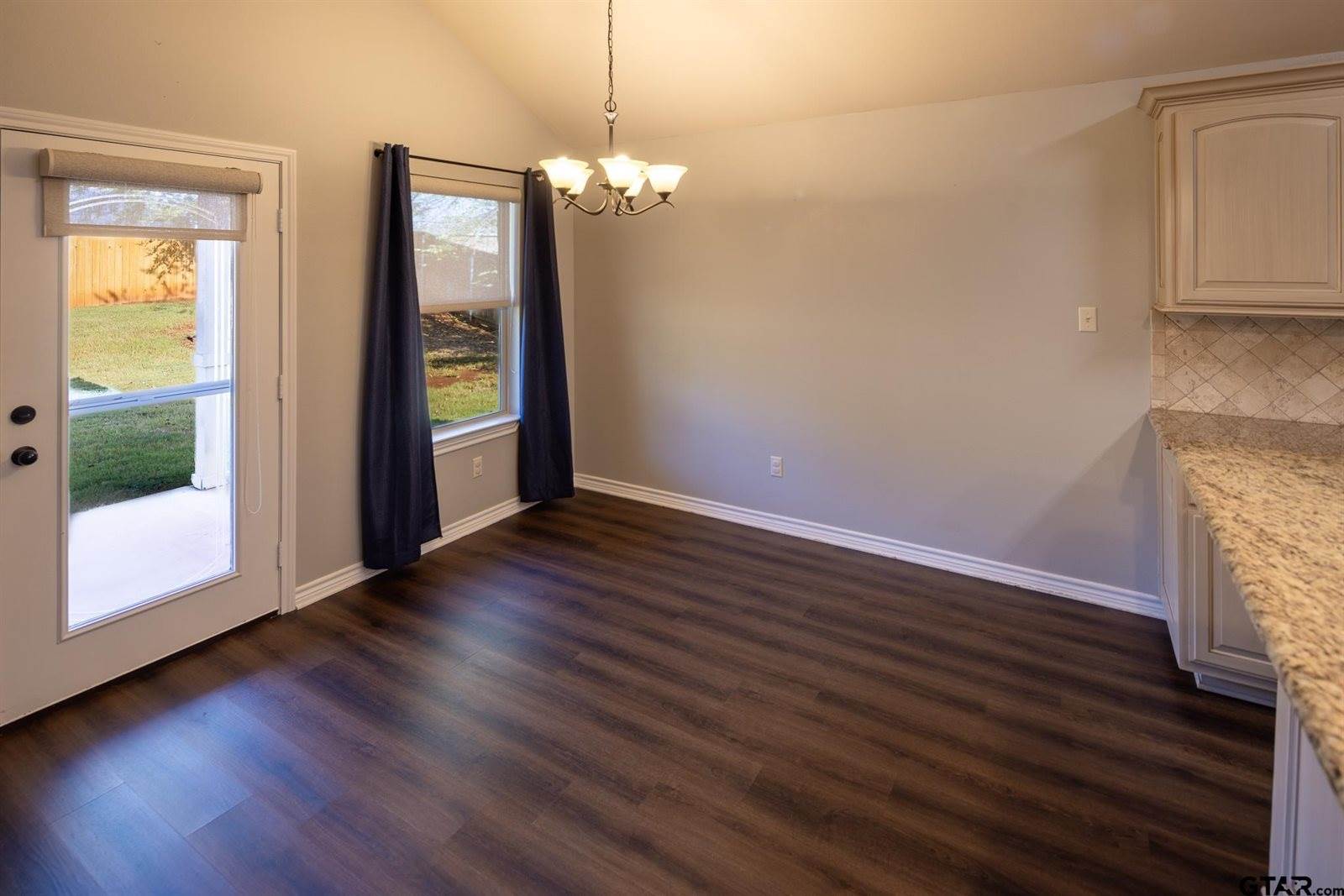 standout? Step outside and take in the view—this home looks out over a neighborhood pond bordered by wide open green space and tall East Texas pines. The oversized lot includes raised garden beds and plenty of space if you’ve been dreaming of building a pool.
