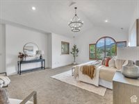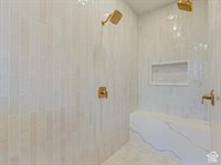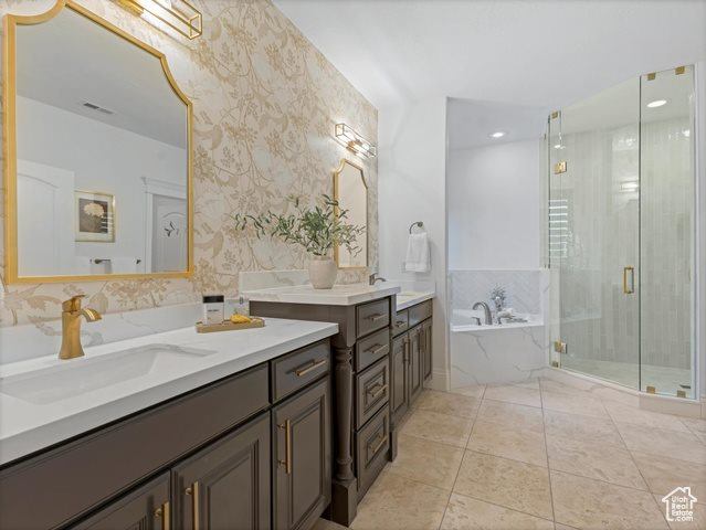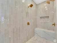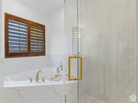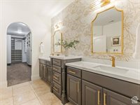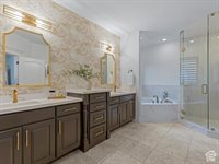 Luxurious Master Bath Boasts Stunning Quartz Counters, New Cabinets, Striking Lighting & Fixtures, Gorgeous Wallpaper, and invites you to pamper yourself in the jetted tub.. and Beautifully Tiled Shower, complete with Euro Glass Finish! Additional features