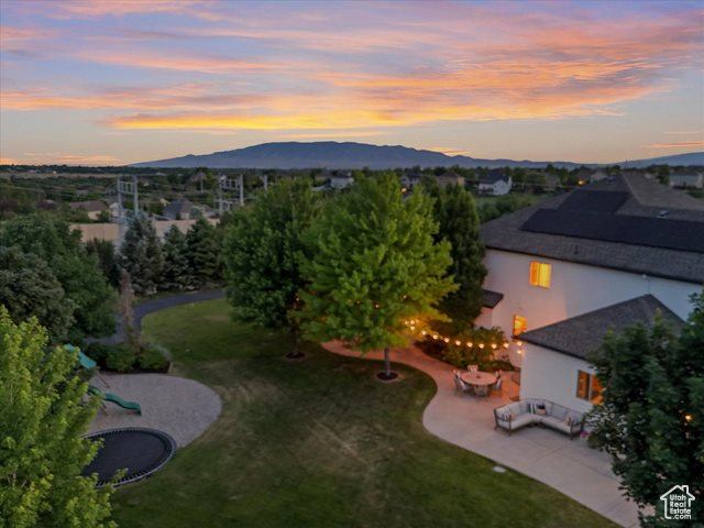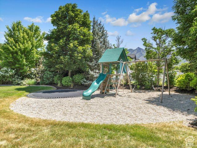 or beautiful patios, while enjoying the Amazing Mountain Views! The kids will have hours of fun with the in-ground trampoline and playground, while that green thumb in your family will enjoy the grow boxes and variety of fruit trees. Solar Panels add over