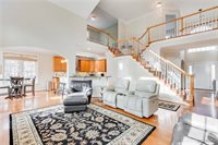 From the moment you pull into the driveway of 14004 Smooth Rock Ct, you’re welcomed by a beautifully landscaped front yard that hints at the care and attention put into every part of this property. The brick-accented driveway leads you to a home that feels warm, inviting, and full of charm. When you step inside, the 30-foot vaulted ceiling and natural light streaming through large windows create an open, airy entryway, instantly making you feel at home. The renovated kitchen is the heart of the home, with high-end granite countertops, a spacious layout, and a large walk-in pantry. Whether you’re cooking for yourself or entertaining guests, this kitchen combines both style and functionality. It’s easy to imagine enjoying quality time here, making meals and memories with loved ones. The first-floor master suite is a peaceful retreat. Custom window shades allow you to control natural light, and two generous walk-in closets offer plenty of storage. The renovated master bathroom is a spa-like oasis, perfect for unwinding after a long day. A refreshing shower or relaxing bath here is the perfect way to end the day. The backyard is designed for both relaxation and entertaining. The two-level deck provides ample space for dining and lounging, while a small paver patio offers an intimate spot for gatherings. Stepping stones lead you to a beautiful fire pit with a seat wall, creating a cozy space for family and friends to gather. The outdoor bar area with bar stools and a TV-facing setup is perfect for enjoying drinks and watching the game. Along the fence, a large perennial bed adds beauty and color, giving the backyard a dynamic, seasonal appeal. Living at 14004 Smooth Rock Court offers the perfect blend of luxury, comfort, and nature. Whether relaxing indoors or enjoying the outdoors, this home provides a space to create lasting memories and enjoy every day to the fullest.