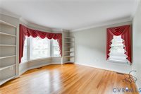 you’re somewhere special. Inside, the warmth of hardwood floors and crown molding welcomes you into both formal living and dining spaces—ideal for holiday gatherings or quiet mornings with a coffee by the bay window. The family room is a showstopper, with