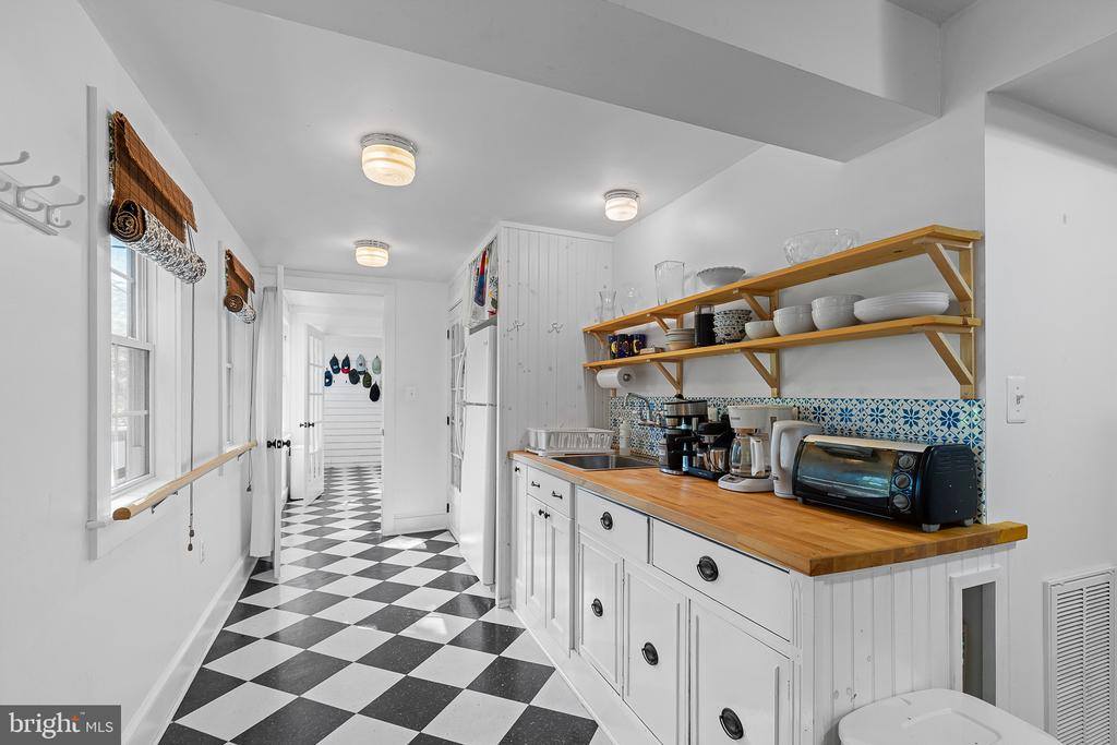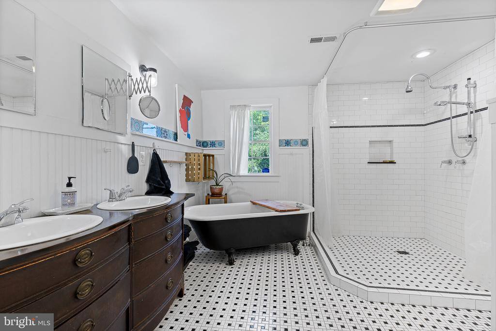 or spare bedroom—adds both functionality and versatility. A charmingly quirky main floor full bath—nicknamed the “Liz Taylor” bath (she was once a house guest during a local fox hunting event)—adds even more character. Set on a spacious lot ideal for gardening,