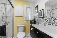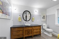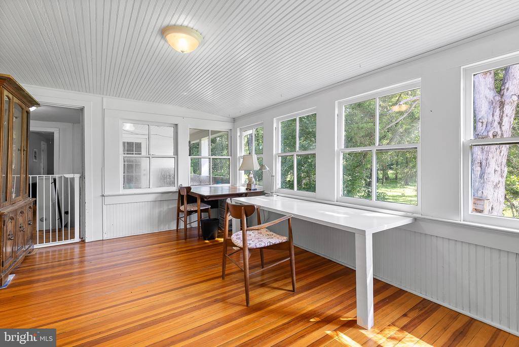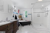 shower, clawfoot tub, and double vanity. Two additional bedrooms share a thoughtfully designed hall bath with a separate shower room, and there's also convenient bedroom-level laundry. A light-filled sleeping porch—perfect as a home office, craft/art room