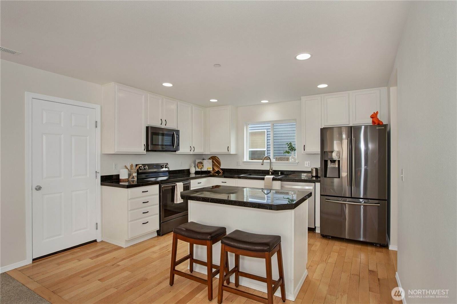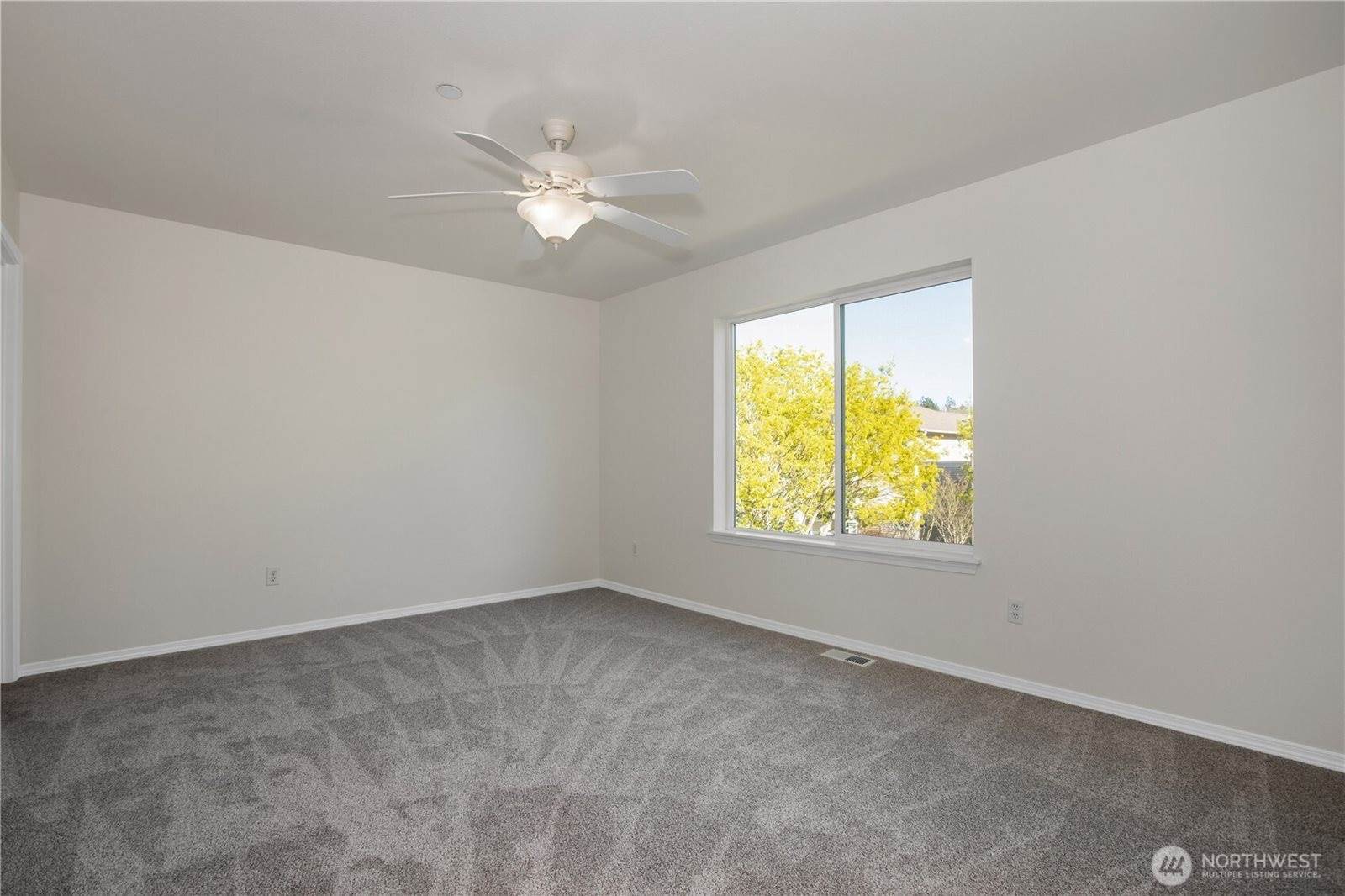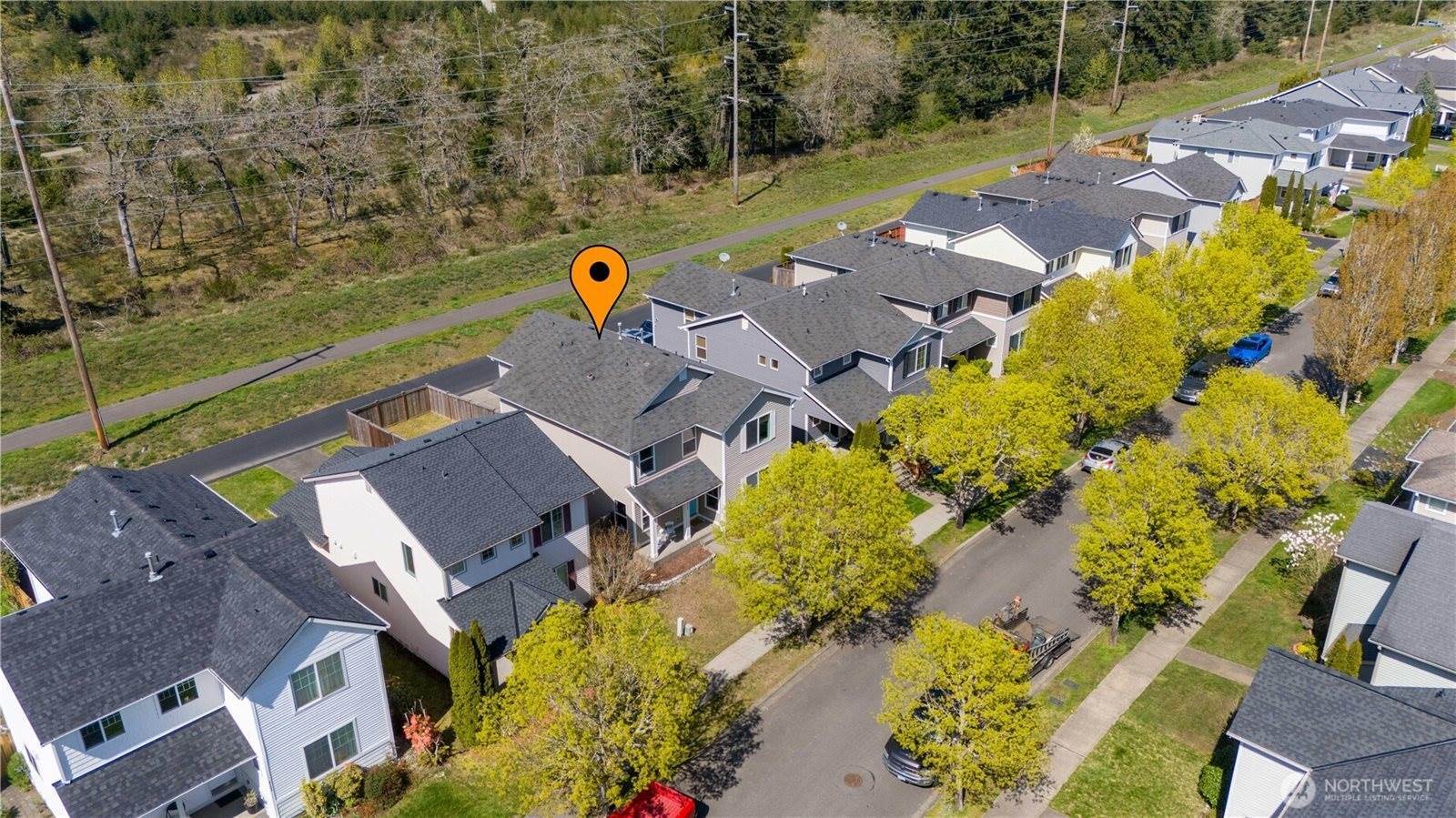 This 3 bed, 2.75 bath home is updated, bright, and MOVE IN READY! Enter through the covered front porch and enjoy NEW carpet and FRESH paint throughout! You are welcomed by the convenient Front Office/Den and spacious Dining Room. Continue to the Living Room w gas fireplace which is open to the Kitchen w bar seating, black/ss appliances, and easy pass through to the large pantry and Dining Room. Upstairs offers all bedrooms, each w walk-in closet! Large loft for extra living space OR potential 4th bedroom! Oversized Primary Suite w a dream walk-in closet and five-piece ensuite w garden tub. Fully fenced side yard w firepit, 2 car garage w built-in storage, backing up to miles of trails! Great location to schools, parks, I-5, and JBLM!