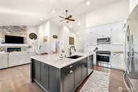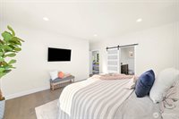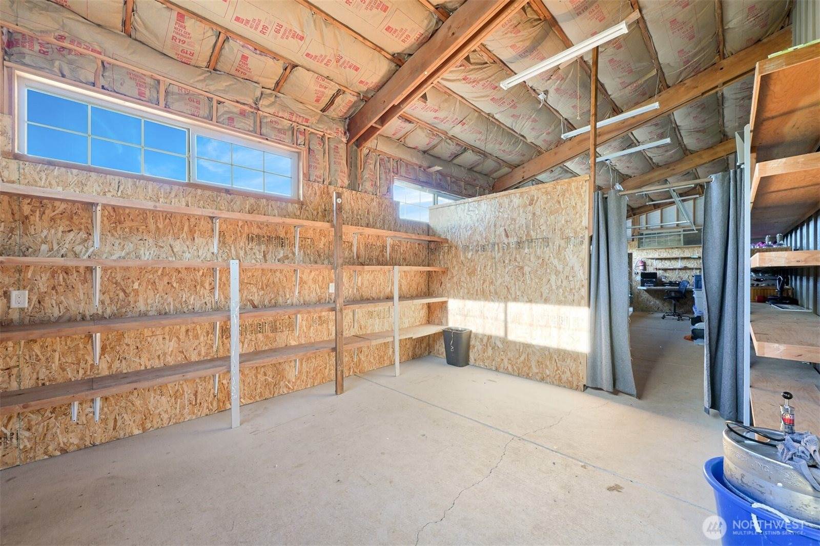 tub, tiled walk-in shower, and spacious closet. Enjoy mountain views from your private back deck. The lower level offers a separate living space with a great room, kitchenette, 2 beds, and 2 baths. Potentially add an ADU to the 3,800+ sq. ft. shop with power,