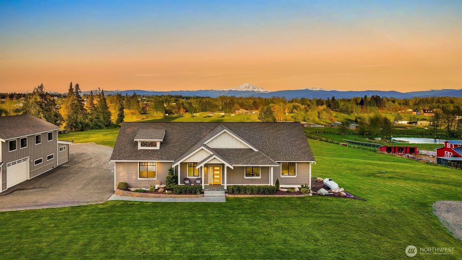 This stunning home offers breathtaking Mt. Baker views, sitting on dry, dividable acreage! 4 bedrooms and 3,698 sqft, the open floor plan enjoys vaulted ceilings, a chef’s kitchen, and inviting living spaces. The dreamy primary suite boasts a custom soaking