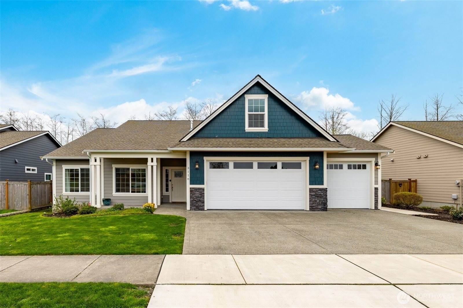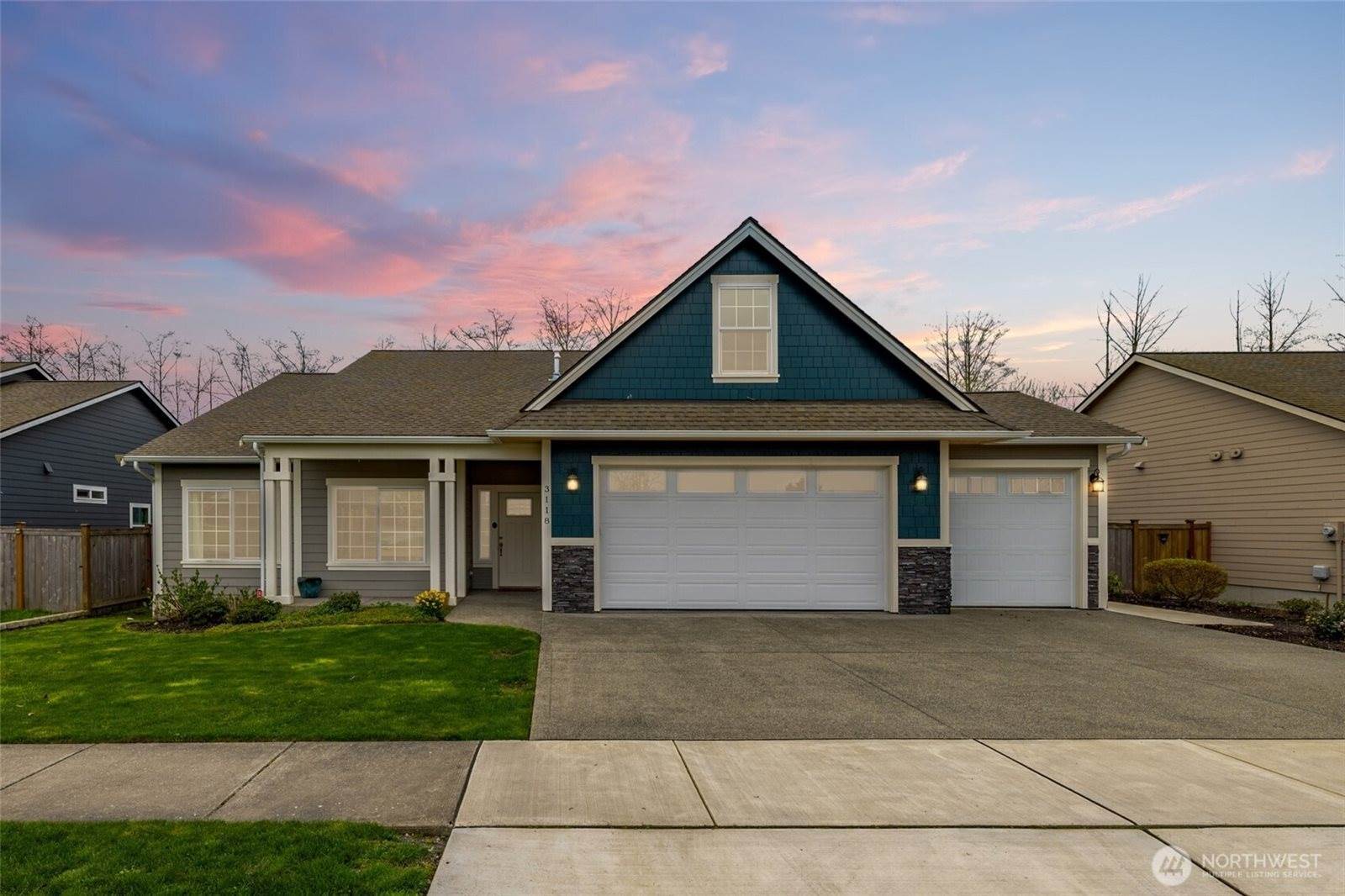 Rare Newer Rambler on Greenspace, With a 3 Car Garage ! Here's the one you have been waiting for.... Lovely Open, vaulted & spacious level entry home. Huge bonus room upstairs. Built in 2019, this Pine Creek location is perfection. Walk to parks, covered pickleball & covered tennis courts, bus stop. Appliances stay. Low HOA dues. ALL of the counters are QUARTZ. Stainless appliances in the kitchen, huge island and room for display or sidebar. Watch the birds in the back from this well laid out home...Covered patios at front and rear. You are close into everything. Amtrak, The San Juans, Canada. Leaf guards, gas for BBQ at back. Fenced and ready for pets. It's time to make your move to the Lovely Skagit Valley ! PRE-INSPECTED & Move-In READY