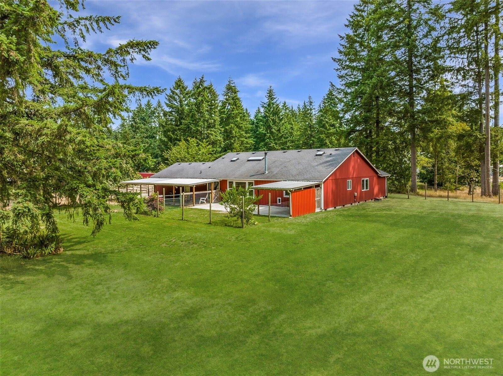 Country rambler sits well off the road on 5 acres offering privacy & lots of room for critters. 2 acres of fenced pasture + large, fenced yard, big covered patio, chicken coop & ample shed, could be used for stables. Home features large open great room