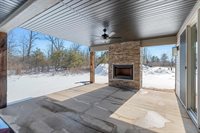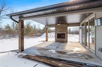 the finished, heated garage adds convenience. Outside, enjoy a covered concrete patio with a wood-burning fireplace—perfect for relaxing after a day of exploring. Located just minutes from Lake Noquebay, this home offers easy access to fishing, snowmobiling,