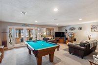 entertaining. The freshly redone three-seasons room offers a bright and inviting space to relax and take in the scenic views. Downstairs, you'll find a spacious bedroom suite, providing a private retreat for guests or family members. The pool table stays,