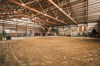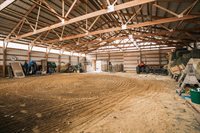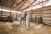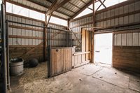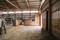 barn with water, provides space for stabling animals, storing equipment, hay, and adjacent to a fenced pasture. The barn is designed to meet the needs of animals and their owners, ensuring convenience and functionality. In addition to the barn, the property