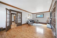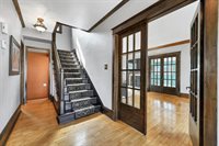 From the moment you pull up, the character of this home stands out. A charming staircase welcomes you, lined by French doors on each side. The dining room features wood ceilings and flows into a kitchen filled with natural light. The main level boasts 9-foot ceilings and beautiful hardwood floors throughout. Upstairs, the primary bedroom includes a large walk-in closet with a built-in sink. There’s also an unfinished attic offering great storage or potential for additional space. The lower level features a bonus room perfect for a fitness area or home office with rubber mat and unfinished underneath. Enjoy both front and back Trex decks, a sunroom with access to the patio, and a partially fenced yard. This home offers unique details ready to make your own. Reviewing offers on 4/7/2025