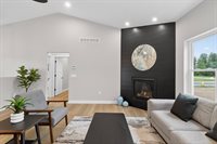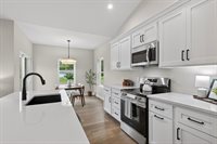 in the main living area, exquisite Amish cabinetry and millwork, and luxurious quartz countertops in the kitchen—perfect for both everyday life and entertaining. Enjoy the convenience of a large 3-stall garage, a cozy gas fireplace, and a basement plumbed