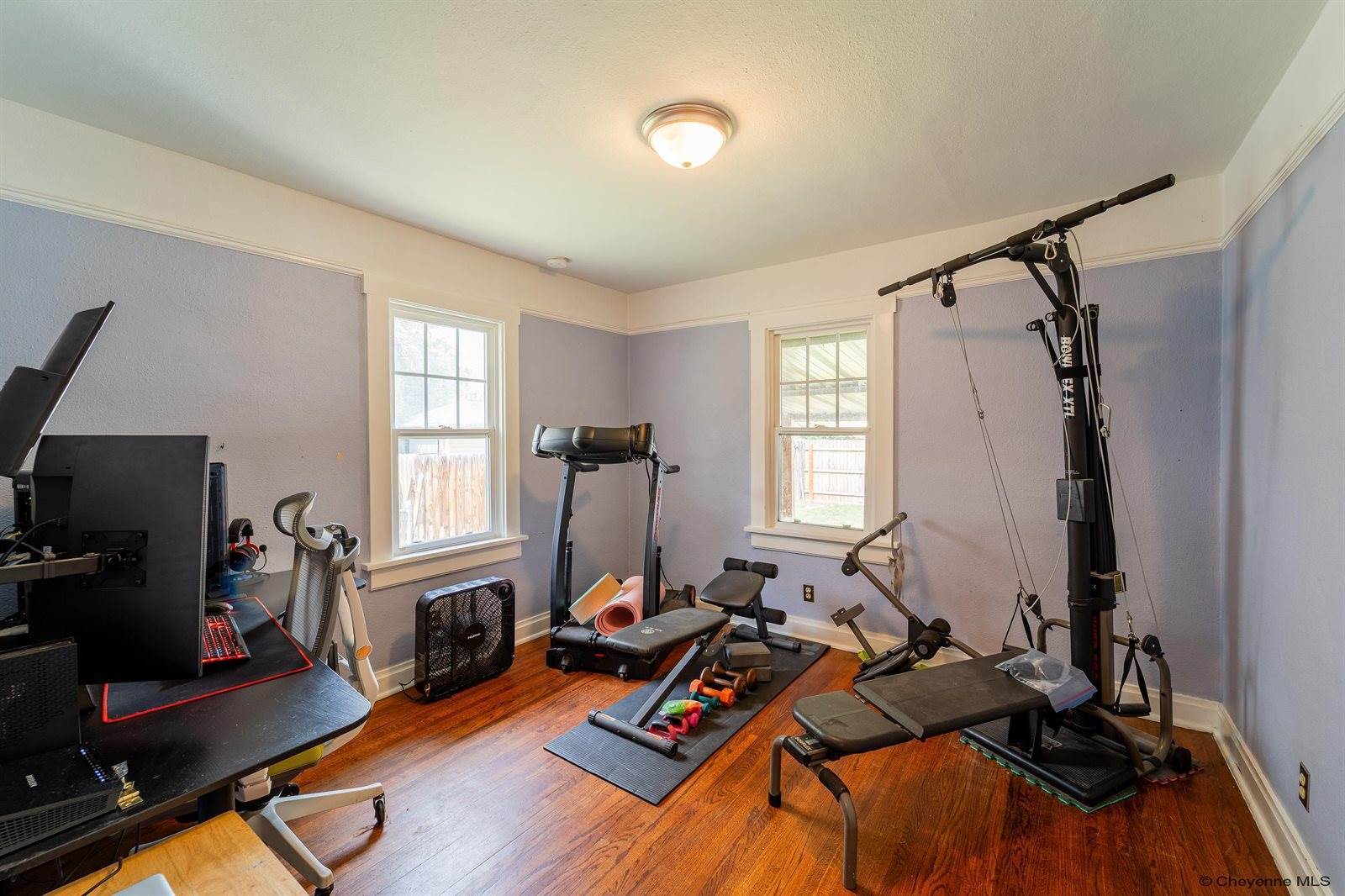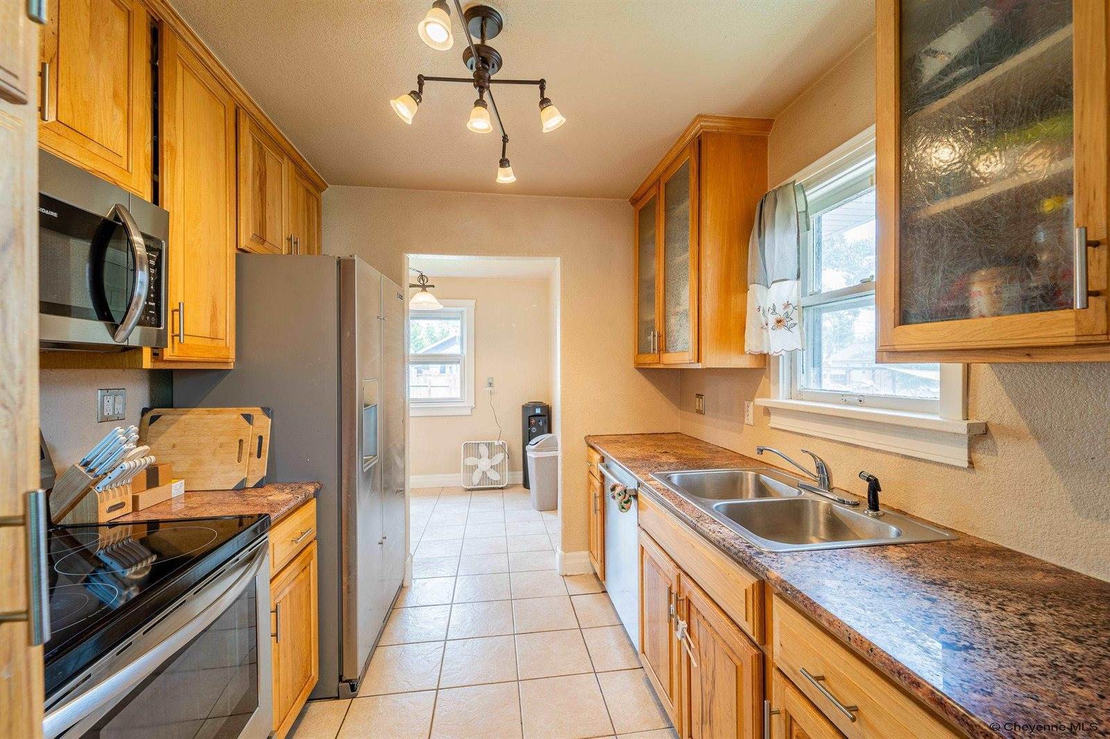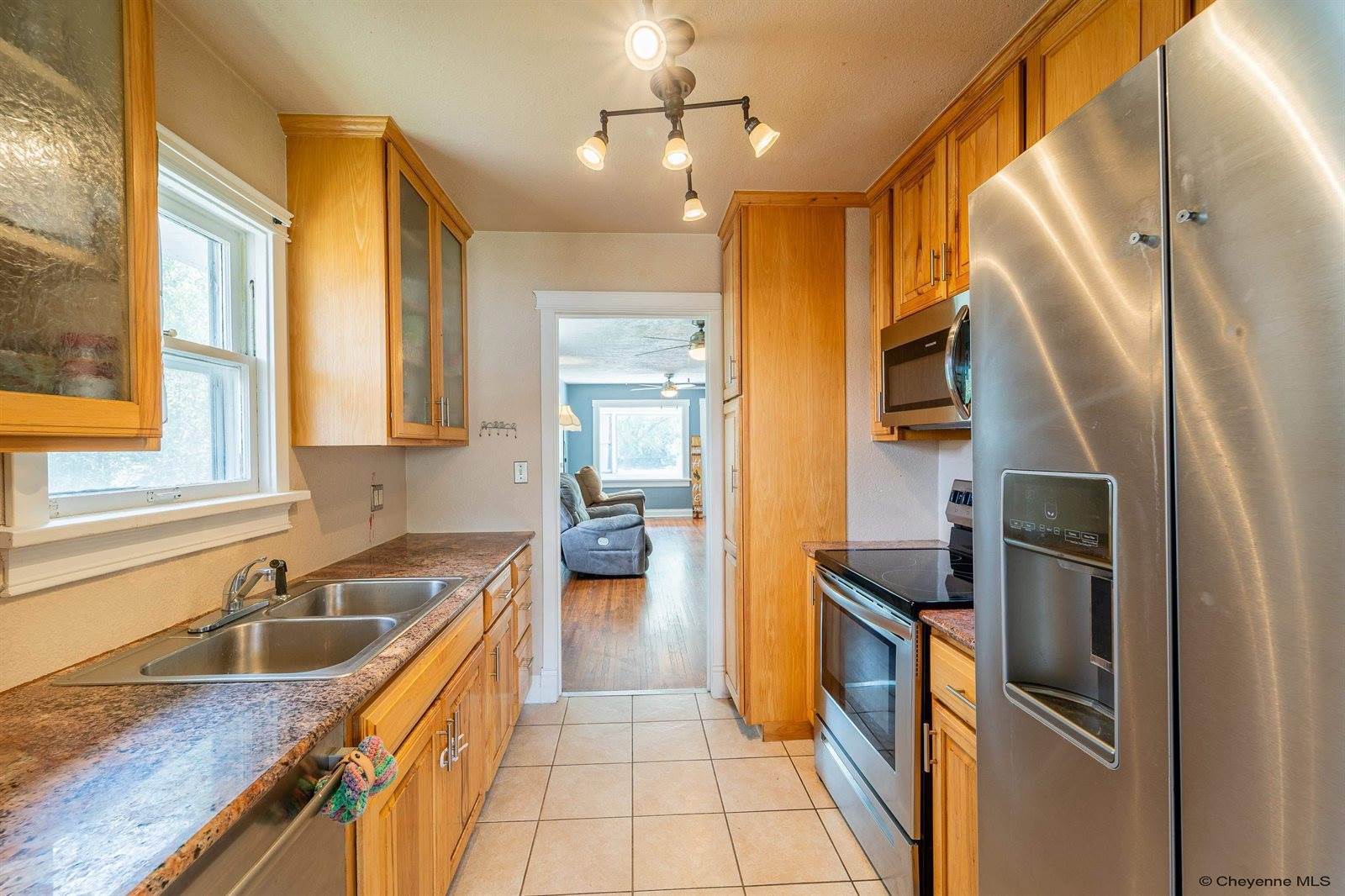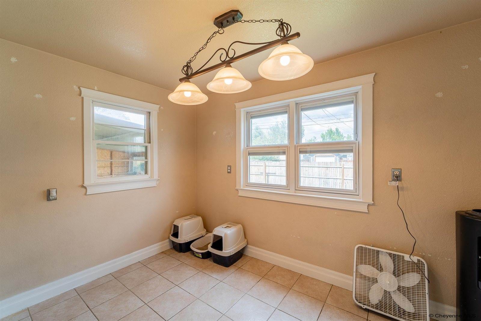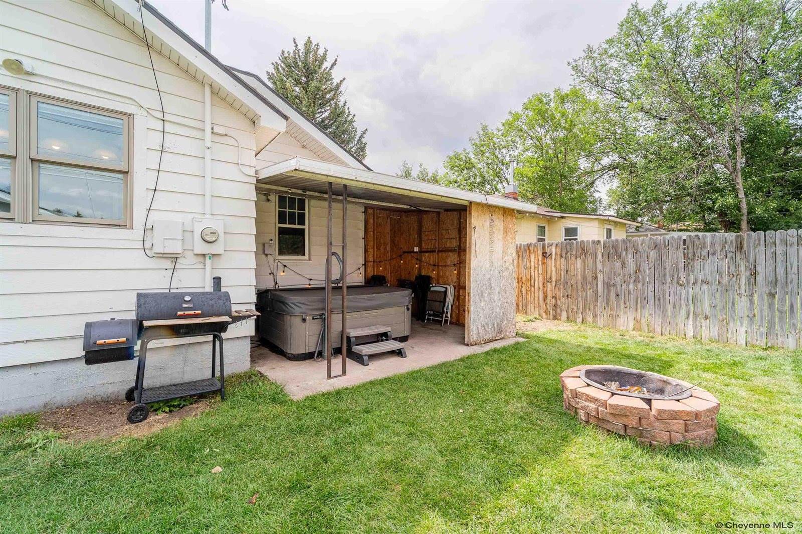 Charming 2-bedroom, 1-bath home with wood floors, an updated kitchen, and maintenance-free metal siding. The unfinished basement is already framed and insulated, and could be finished to add a bathroom and 2 more bedrooms for instant equity. Enjoy a fully fenced front and back yard in an established, historic neighborhood, just a 10-minute walk to Frontier Park, Lions Park, or downtown, and close to FE Warren Air Force Base. Relax on the covered back patio with a cozy fire pit and a Bullfrog spa. Additional features include a 1-car garage, plus off-street alley parking for up to 3 vehicles.